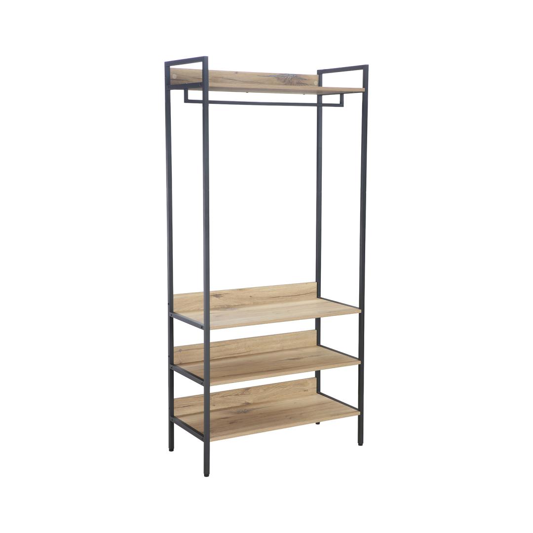 Under the top shelf, there is a rod for hanging cloth hangers. Esikuriiul HANNES 84x40xH180cm, rustik melamiin.