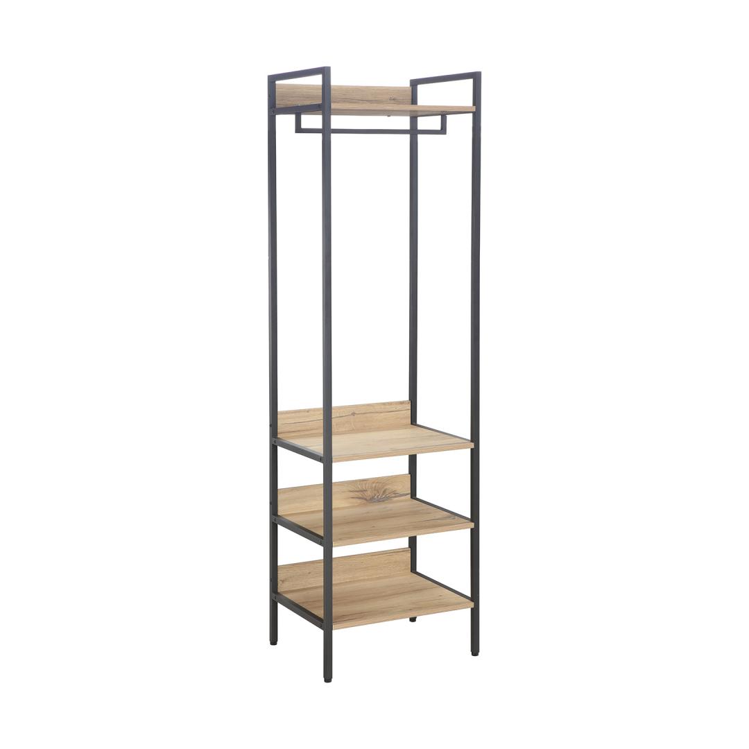 Under the top shelf, there is a rod for hanging cloth hangers. Esikuriiul HANNES 52x40xH180cm, rustik melamiin.