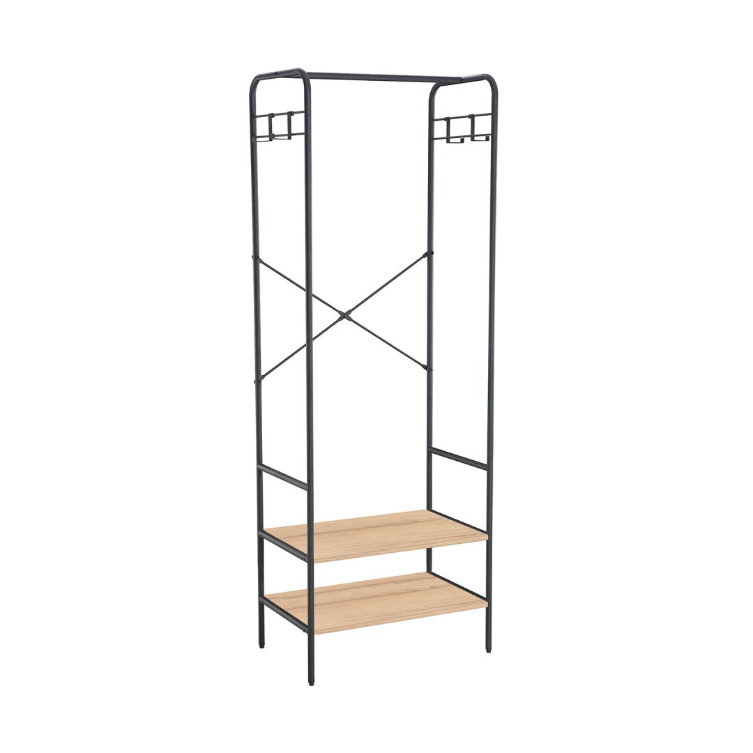 The frame is made of metal and finished with a black powder coating. Esikuriiul HANNES 64x40xH180cm, rustik melamiin.