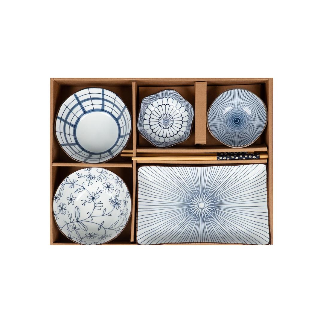 Set SOMETSUKE 4-bowls, platter and chopsticks, blue