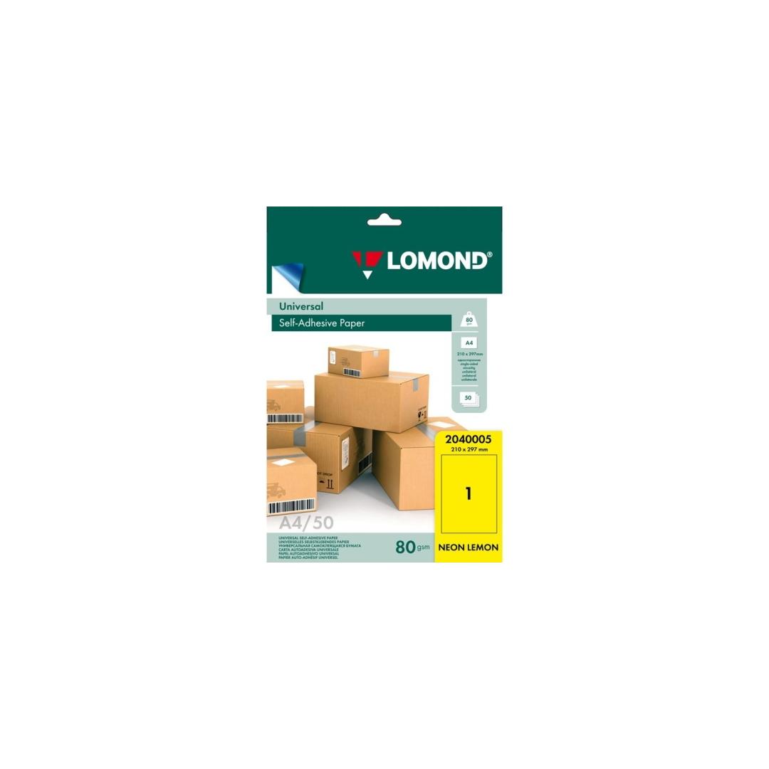 Lomond Self-Adhesive Paper Universal Labels, 1/210x297, A4, 50 sheets, Lemon neon