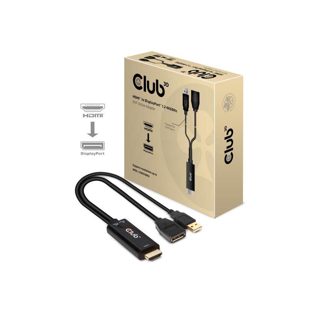 The Club 3D CAC-1331 is an HDMI™ to DisplayPort™ 1.2 Active Adapter which allows you to transmit a HDMI™ signal into a DisplayPort™signal. This product supports DP1.2 specification with resolution up to 3840 x 2160@60Hz. Besides, it is equipped with USB Type A port to supply power in case there isn’t enough power from the HDMI™ source. This Adapter is Uni-Directional.