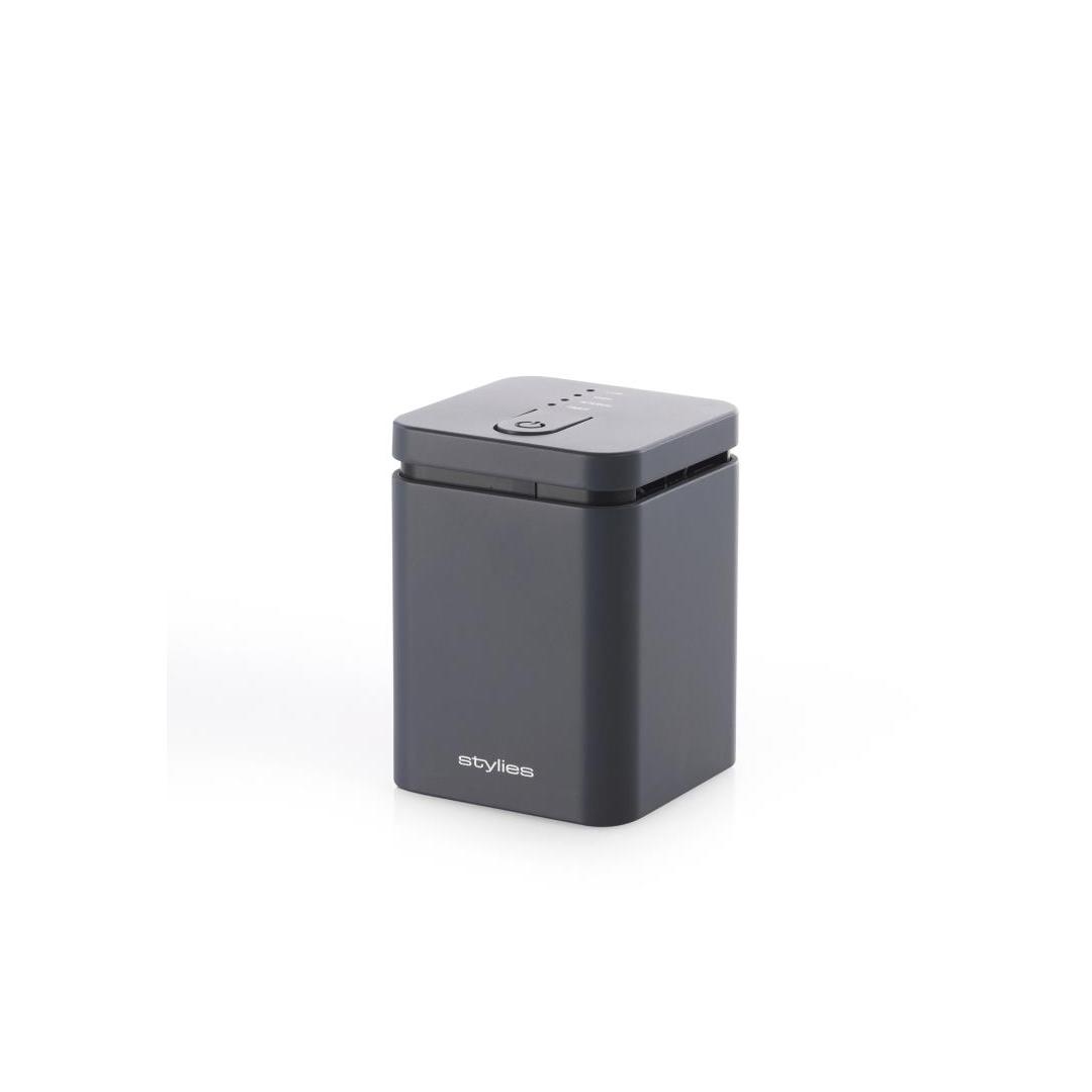 With a maximum power of 1.3 watts, this innovative diffuser guarantees optimal fragrance distribution. Enjoy complete control with two speed settings, an interval mode, and a practical timer. It can be conveniently powered via USB, adapter, or batteries. Elara is compatible with essential oils and perfume and is especially recommended in combination with STYLIES Aroma Gels. Choose from three different colors: purple, anthracite, and white.