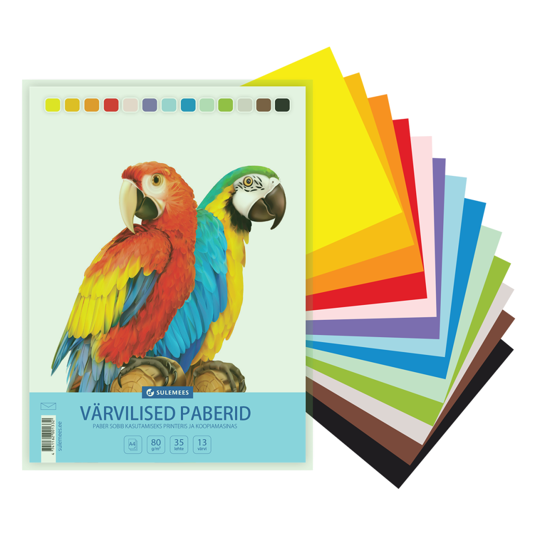 Värviline paber A4 80g 13 värvi 35 lehte trukiga kotis