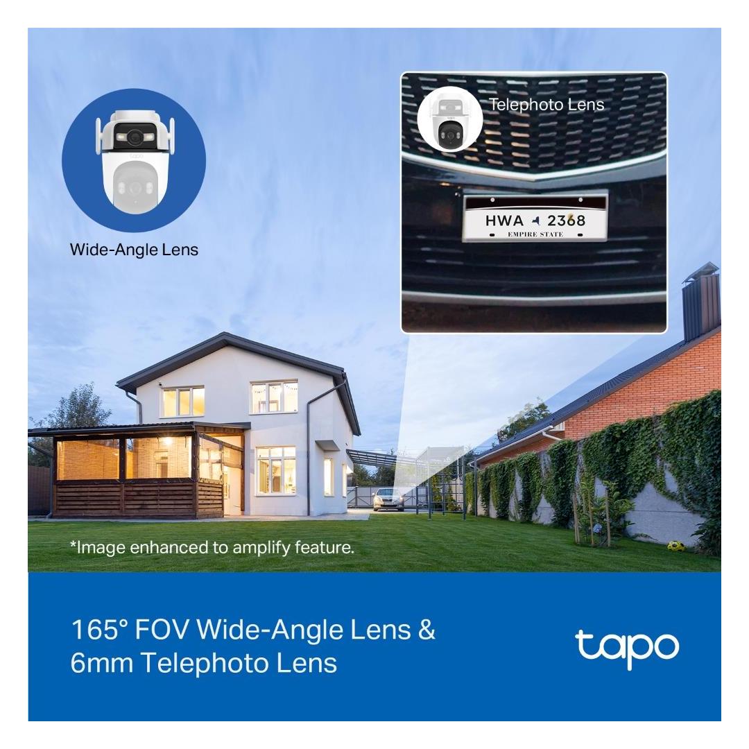 - Wide-Angle & Telephoto Lens - With 165° FOV wide-angle lens and 6mm telephoto lens, it ensures all-around awareness and down-to-the-detail protection of your home.
