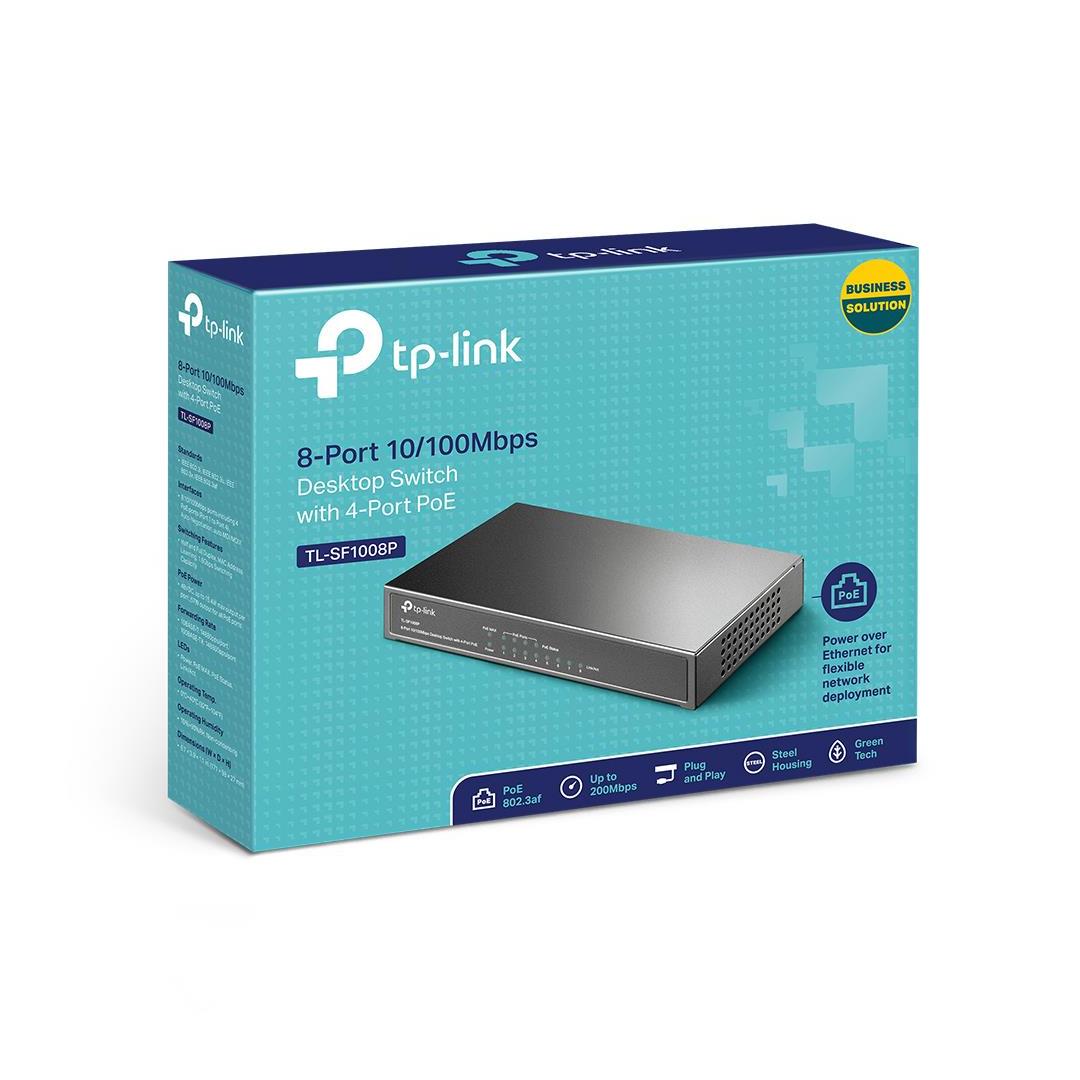 TL-SF1008P is easy to install and use. It requires no configuration and installation. With desktop design, outstanding performance and quality, the TP-LINK’s TL-SF1008P 8-Port 10/100Mbps Desktop Switch with 4-Port PoE is an ideal choice for expanding your home or office network.