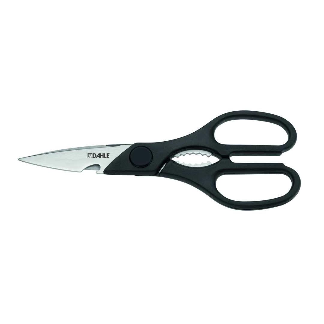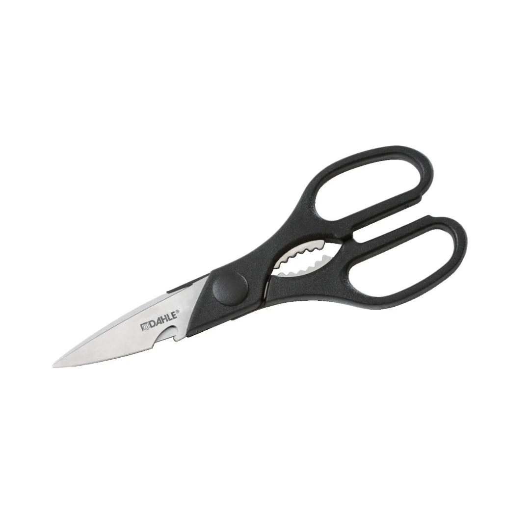 HOME scissors made of hardened special steel Practical scissors for use in the office and home office. Blades made of rust-resistant, hardened special steel for precise cuts. Sharpened cutting blades ensure long-lasting sharpness. High-quality handles made of shatterproof ABS plastic for comfortable work. Additional practical function: integrated bottle opener. Micro-toothed blades ensure a cut-resistant hold. • Paper scissors • Size: 21 cm • Handedness: right-handed • Color: black