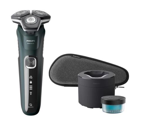 Shaver features Follows face contours/Rinseable blades/Quick charge/Travel pouch, Colour Dark green