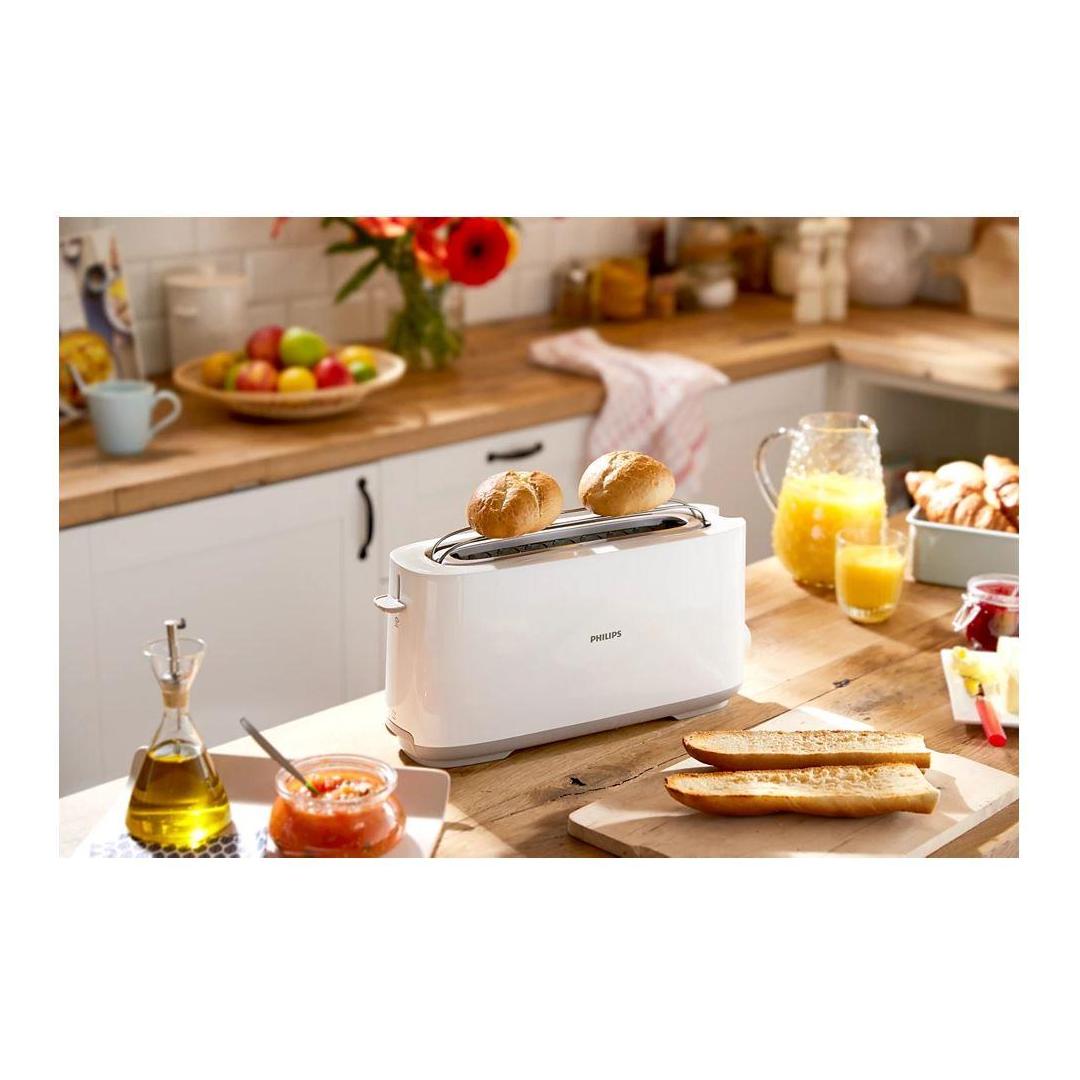 A toaster with a long slot and 8 settings for an even golden brown result, no matter what you're toasting or how you like it. A built-in bun warmer rack is perfect for everything from rolls to croissants.