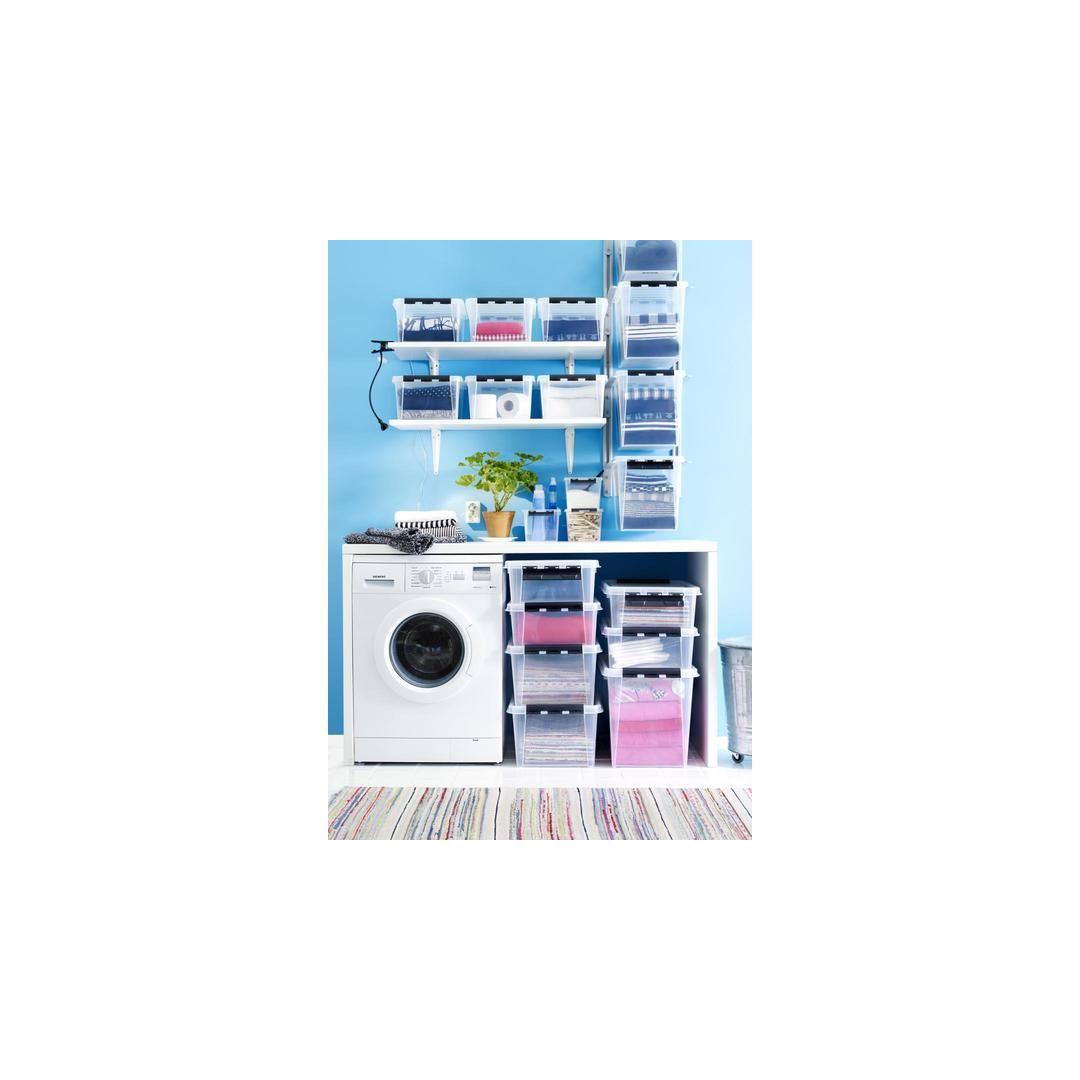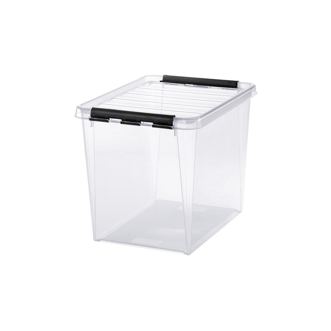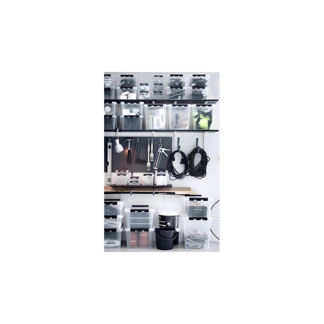 Practical storage box for the hallway, pantry or utility room. Ideal for storing tall bottles with household cleaning products. Also suitable for shoes, gloves, hats and many other things. Strong clips ensure a tight closure of the lid. SmartStore boxes are stackable. External dimensions: 40 x 30 x 32 cm Internal dimensions: 30.8 x 23.1 x 28.9 cm Volume: 25 l Material: plastic Colour: transparent white