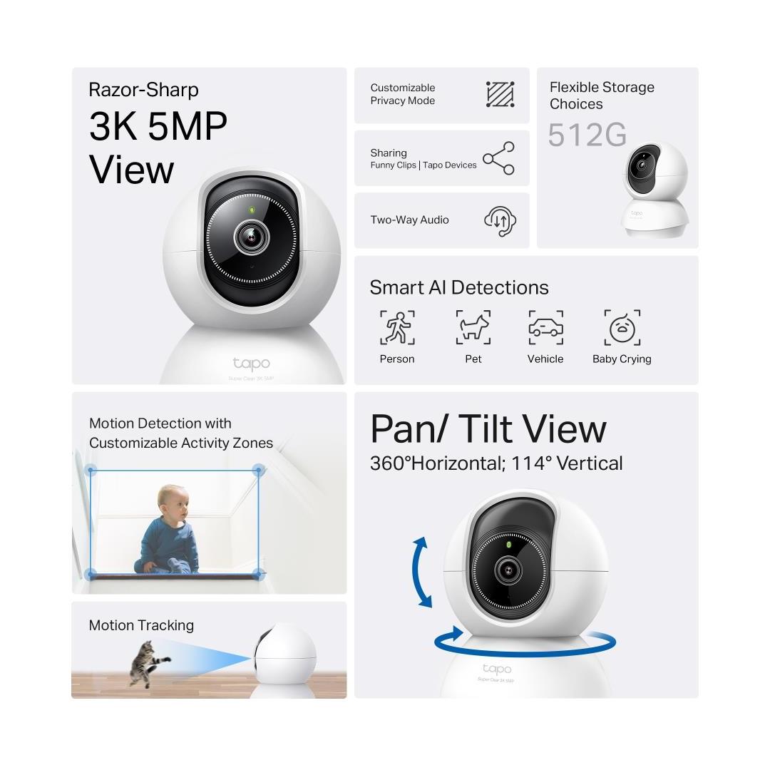 Tapo C230|Sensor size 1/3”|Microphone Built-in|Supports card capacities up to 512GB|Colour White|Dimensions 85.4 × 86.8 × 117.7 mm|box quantity 1
