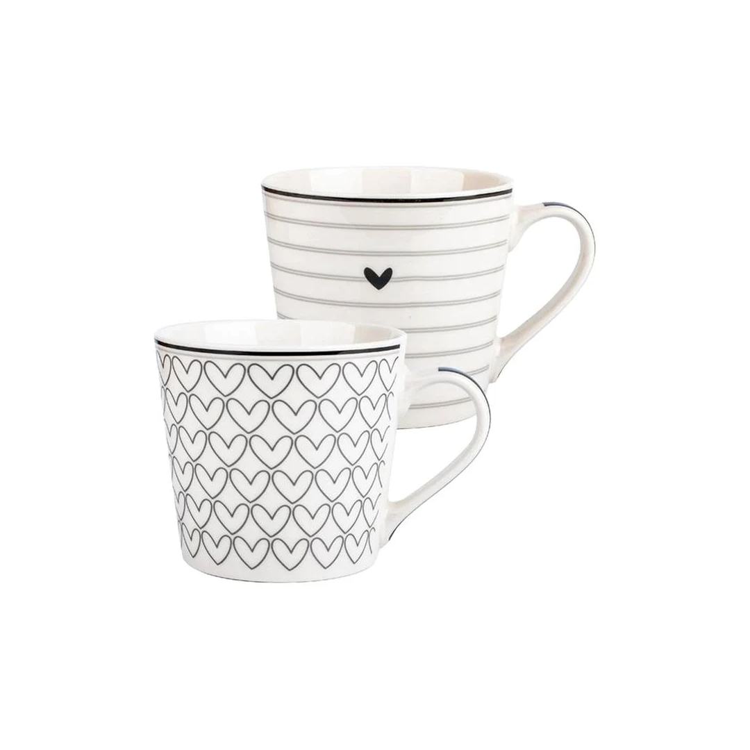 Mug with hearts, ceramic. Attention! The product is available in different designs. Please write your preference in the "Shopping cart" view in the "Message to the store - details for order fulfillment" box. Choice: with hearts or striped.