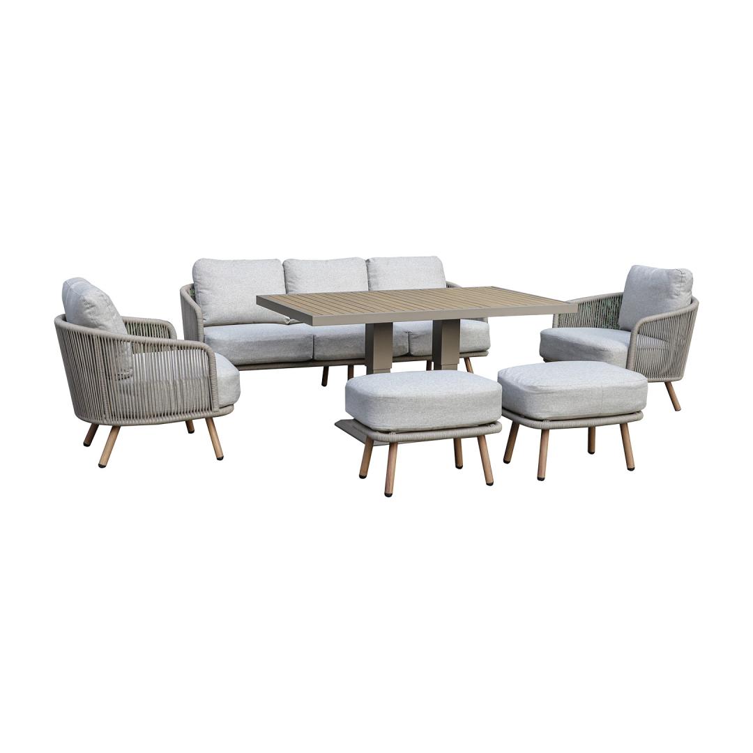 Aiamööblikomplekt MALISE laud, diivan, 2 tugitooli ja 2 tumbat, beež