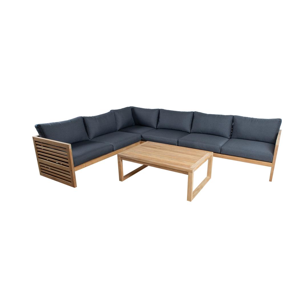 Diivan ja laud on valmistatud hoolikalt valitud küpsest tiikpuust. Puidu peenlihvitud pind on täielikult naturaalne. Tänu suurele looduslike õlide sisaldusele on tiikpuu väga vastupidav niiskuse ning puidukahjurite suhtes ning ei vaja täiendavat viimistlemist või õlitamist. Tiikpuu talub väga hästi erinevaid ilmastikutingimusi ja säilitab oma suurepärase välimuse ja parimad omadused pikkadeks aastateks. Mida küpsem on puit, seda suurem on selle tihedus ja õli sisaldus ja seda vastupidavam ja stabiilsem on see ilmastikutingimuste suhtes. Päikesevalguse ja niiskuse mõjul muutub puidu pind aja jooksul kaunilt hõbehalliks. Selline värvimuutus on loomulik ning ei mõjuta puidu kvaliteeti.