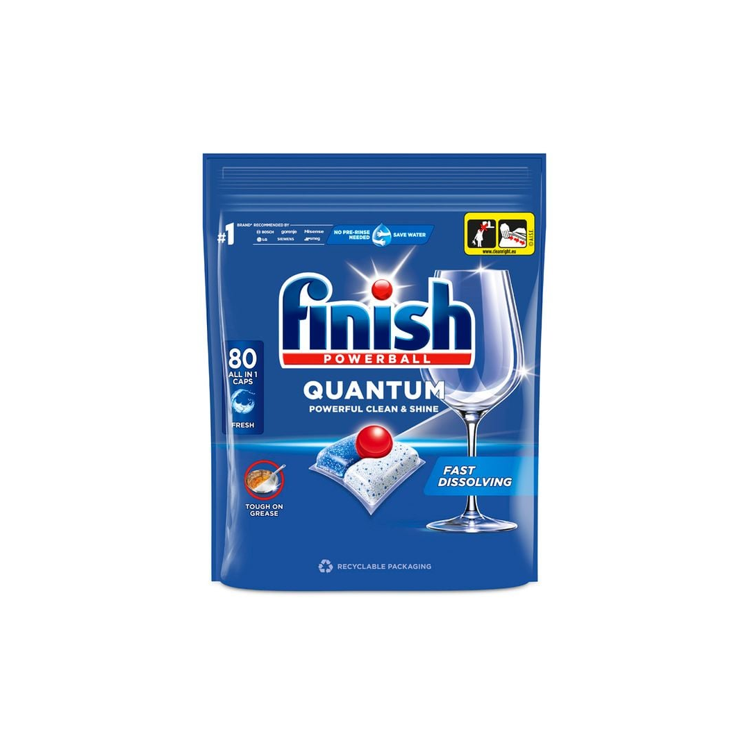 Finish Quantum All in One, for a deep clean and a brilliant shine the first time, every time. This compact 3-chamber capsule effectively breaks down all food residues - even without pre-rinsing. 25% fewer chemicals compared to Finish Power tablets. WARNING! Causes skin irritation. Causes severe eye irritation. Contains subtilisin. May cause an allergic reaction. Keep out of reach of children. IF IN EYES: Rinse cautiously with water for several minutes. Remove contact lenses, if present and easy to do. Rinse again. If eye irritation persists: seek medical advice. Have the product container or label with you when seeking medical advice. IF ON SKIN: Wash with plenty of water.