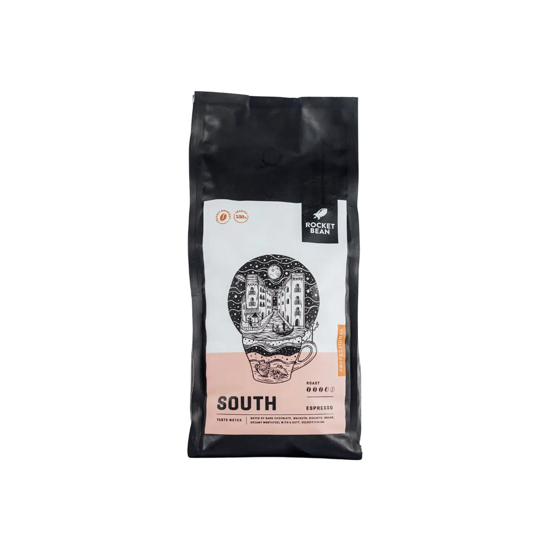South is a medium roast Arabica coffee blend inspired by Southern coffee culture. The Italian-style roast brings out the roundness and smoothness of the coffee, offering a rich and balanced taste experience. Taste and aroma: Dark chocolate depth, toasted walnut and biscuit notes. Creamy and velvety aftertaste. Roast level: 3.5