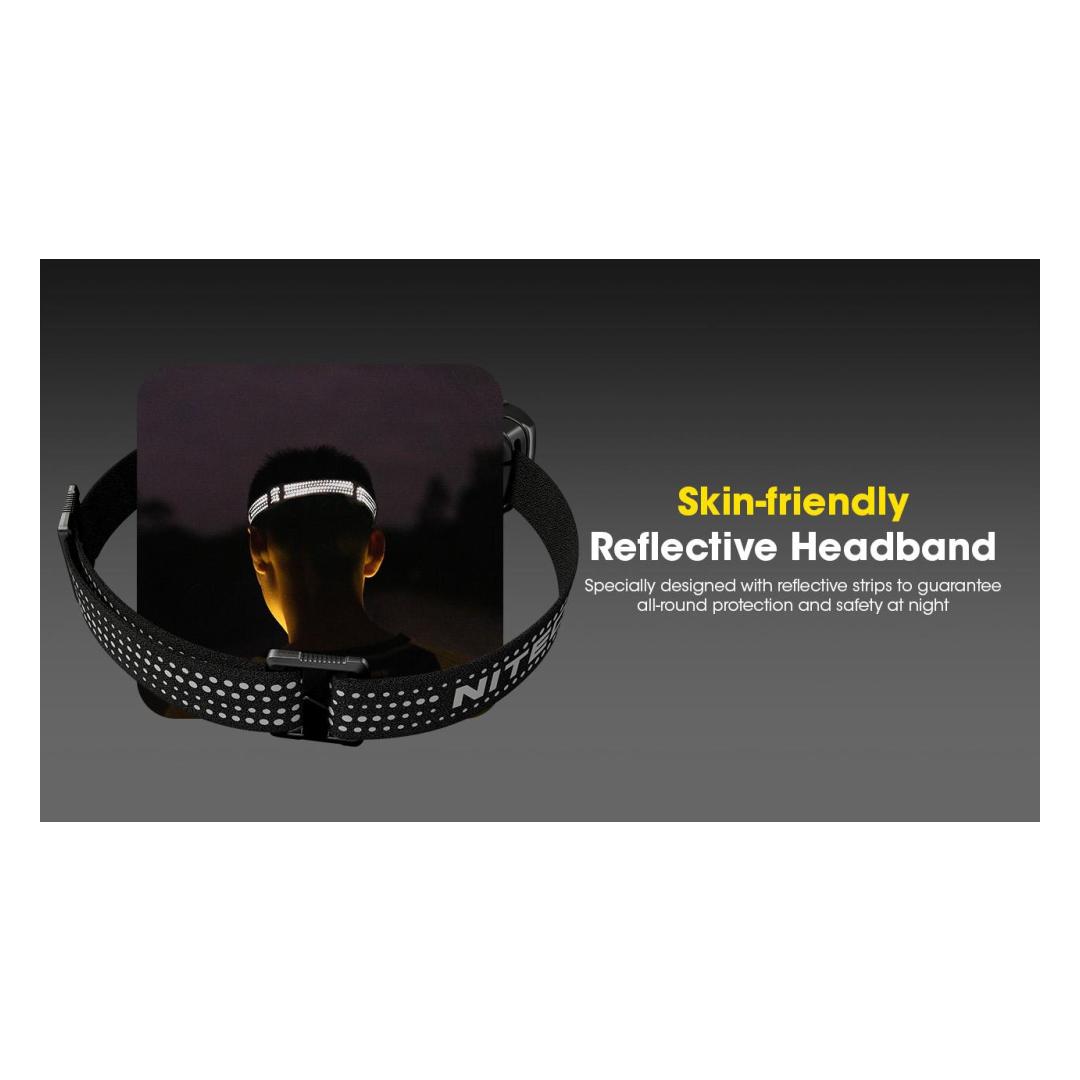 Safety Features: Includes reflective strips on the headband for enhanced visibility and a lockout mode to prevent accidental activation.