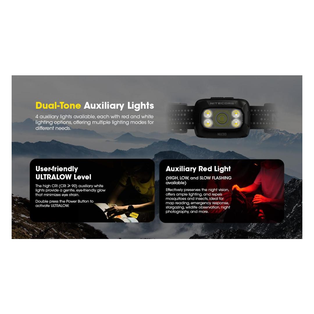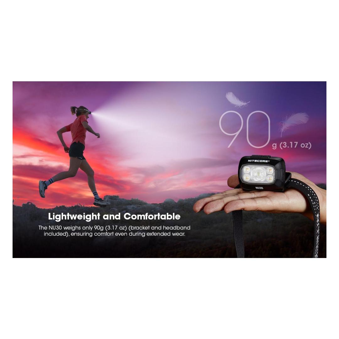 The Nitecore NU30 is a versatile and lightweight rechargeable headlamp designed for a wide range of outdoor activities like hiking, camping, and trail running. It stands out for offering multiple light sources and features in a compact form.