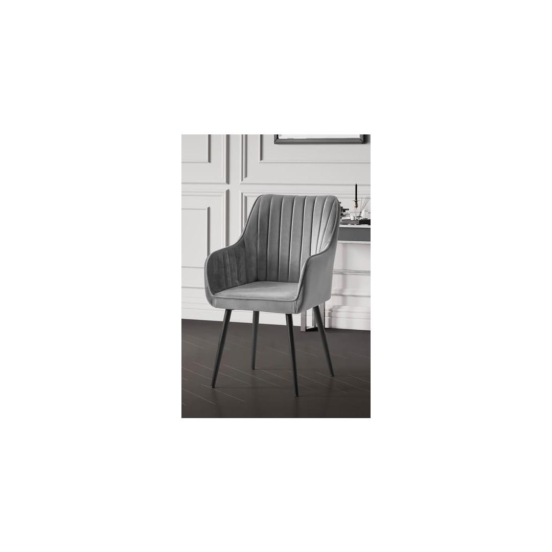 Add a touch of luxury to your home with this chic chair set. The grey and black color combination adds a contemporary flair to any room, while the 100% polyester fabric ensures comfort and durability. Whether you're hosting a dinner party or simply relaxing at home, these chairs will elevate your space and impress your guests.