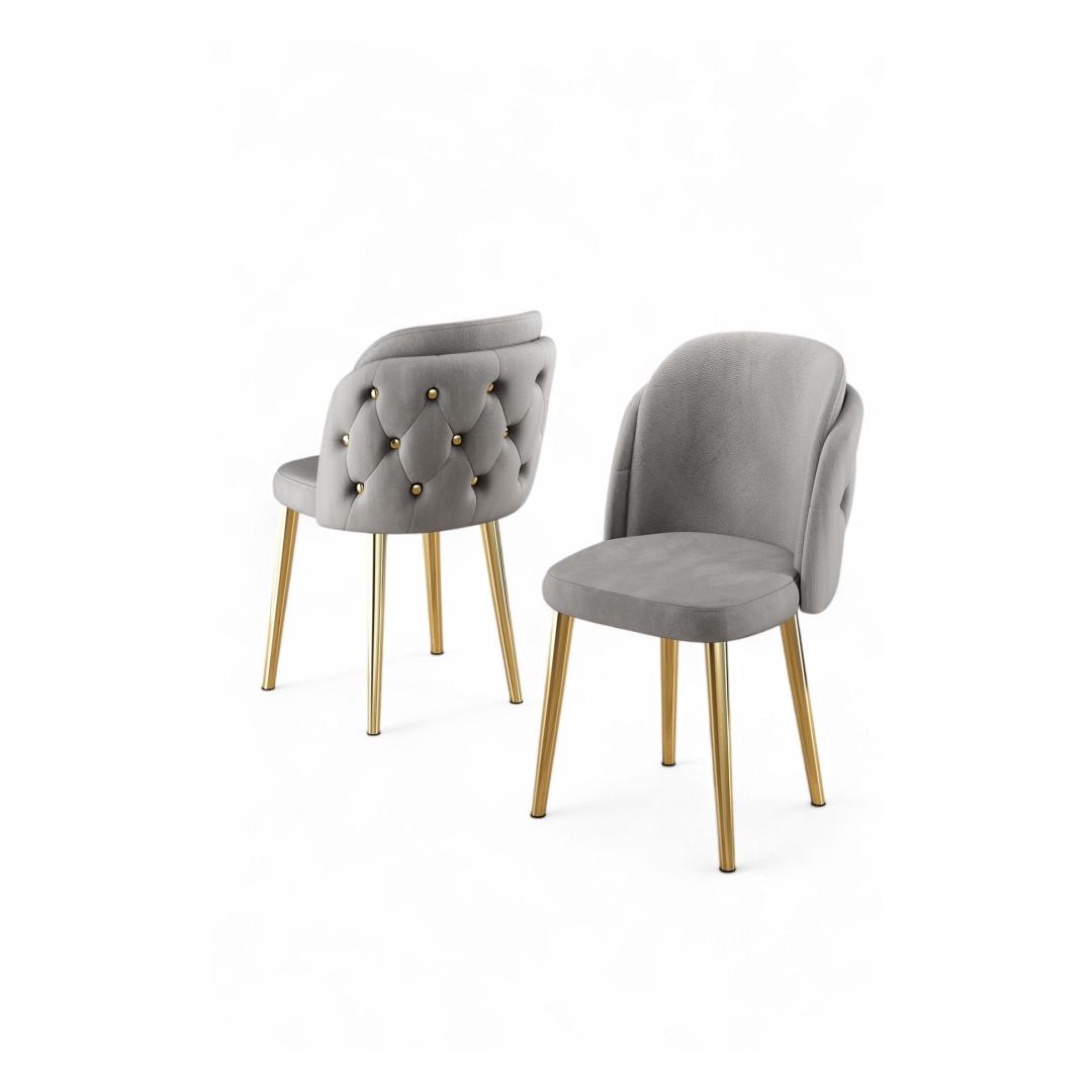 Add a touch of modern elegance to your home with our Chair Set. The combination of the sturdy metal frame and the plush foam seating ensures both durability and comfort. The sleek design and the subtle Grey and Gold color palette make this set a versatile addition to any decor style.