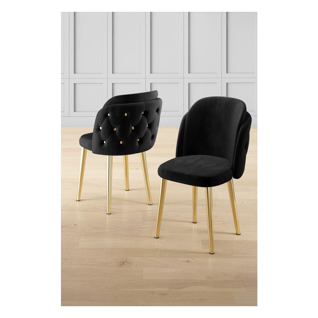 Say goodbye to boring and uncomfortable chairs and welcome these stylish and plush chairs into your home. The combination of black and gold colors adds a touch of sophistication to any dining room decor, making it the perfect addition to your space.