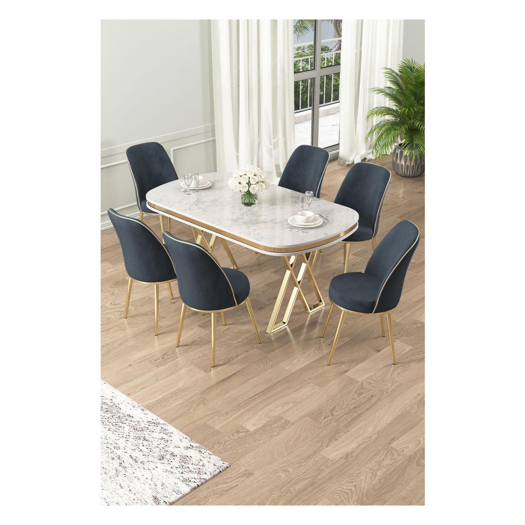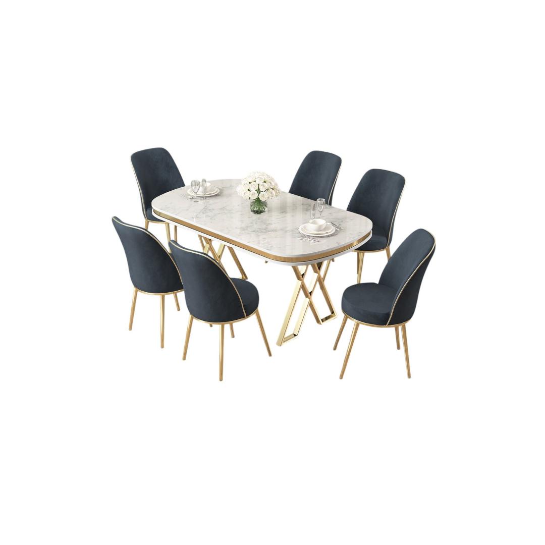 Dining Table & Chairs Set (7 Pieces) Lai - White, Gold, Anthracite