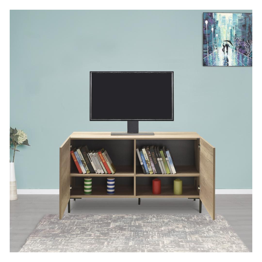 Say goodbye to clutter and hello to organization with the numerous shelves on this TV stand. Keep your DVDs, gaming consoles, and other entertainment essentials neatly stored and easily accessible. The sleek design of this stand will elevate the look of your living room while providing ample storage space.