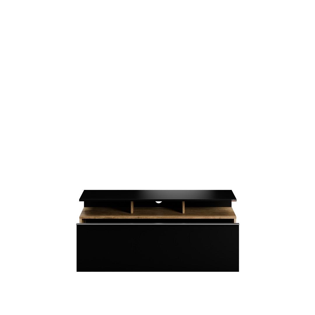 With its sleek design and versatile color scheme of black and walnut, this TV stand will instantly elevate the look of any room. The combination of colors adds a touch of elegance and sophistication to your space, making it the perfect addition to any modern home.
