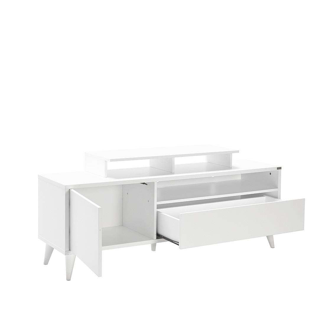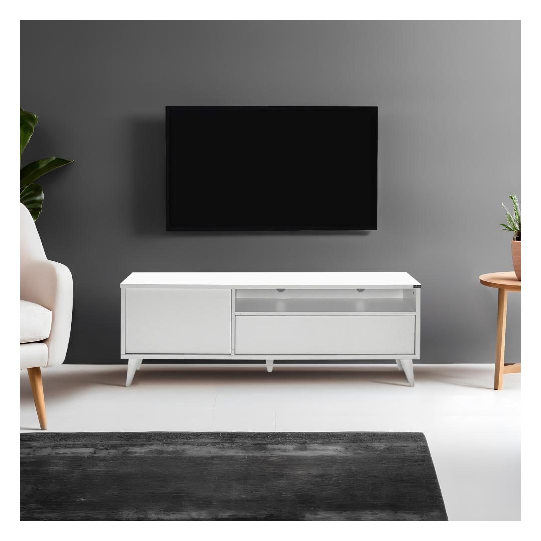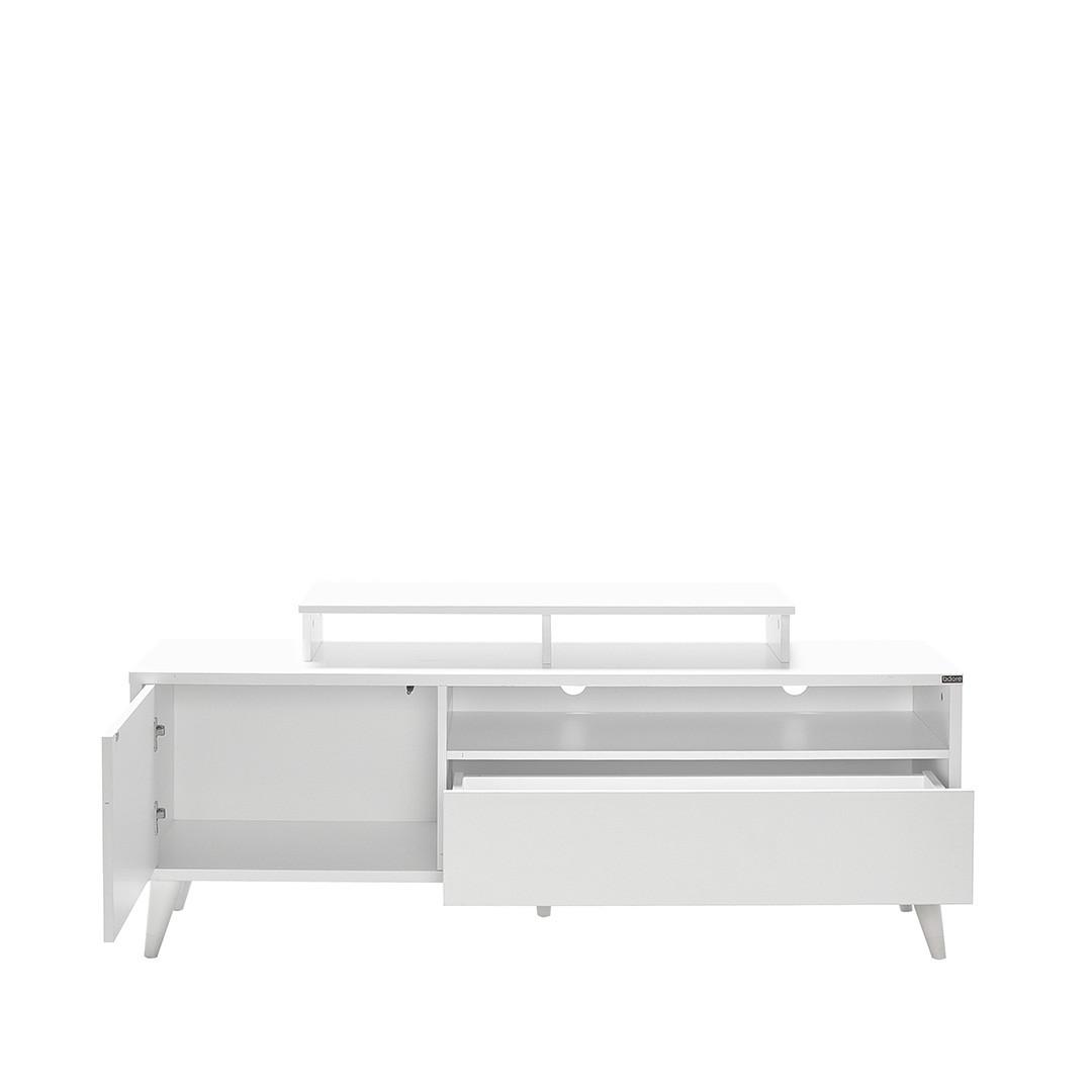 The white color of this TV stand adds a touch of elegance to any room, while the clean lines and minimalist design make it a versatile piece that will complement any decor style. Whether you have a modern, contemporary, or traditional space, this TV stand will fit right in.