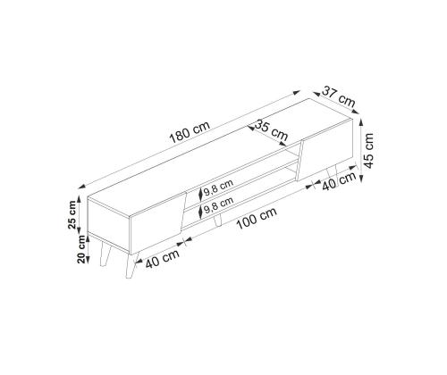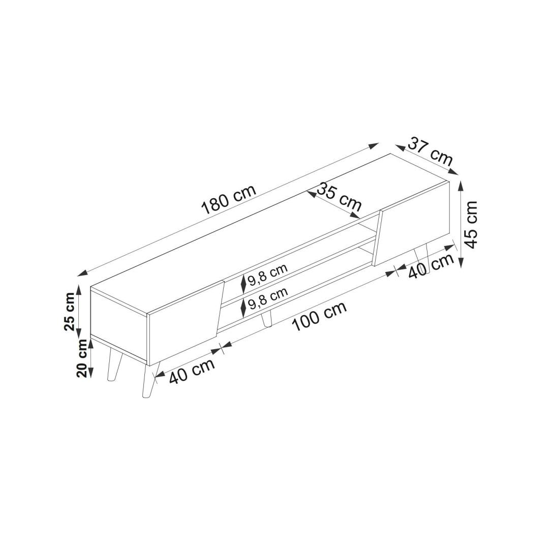 Crafted from 100% melamine coated particle board, this TV stand is built to last. The 18mm thickness ensures durability and sturdiness, while the sleek design adds a touch of sophistication to your space. The generous dimensions of 180cm in width, 37cm in length, and 45cm in height provide plenty of room for your TV, media players, and decorative items.