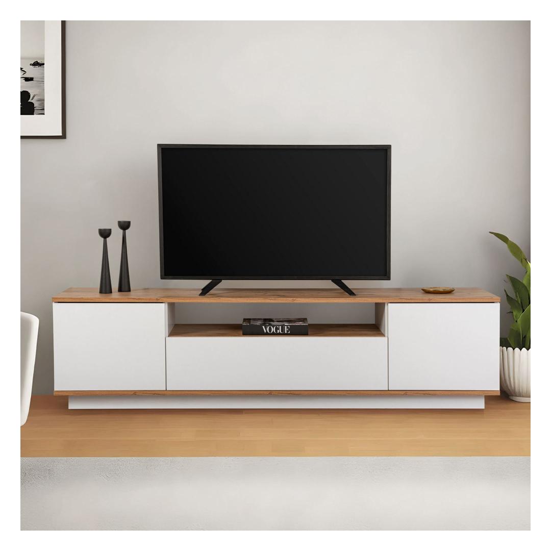 Tõstke oma eluruumi kaasaegse ja uudse teleripuldigaMuuda oma elutuba stiilseks ja kaasaegseks pelgupaigaks meie moodsa ja uudse teleripuldi abil. See muljet avaldav teleripult ühendab endas funktsionaalsuse ja elegantse esteetika, et suurendada teie meelelahutuskogemust. Võrratu vastupidavus ja kvaliteetSee 100% melamiiniga kaetud puitlaastplaadist valmistatud teleritugi on valmistatud kestma. Paksus 18 mm tagab erakordse tugevuse ja stabiilsuse, pakkudes telerile ja teistele meediaseadmetele tugevat alust. Stiilne disain keerulise välimuse jaoksAtlandi männi ja valge värvikombinatsiooniga väljendab see teleripult elegantsust ja rafineeritust. Kontrastsed värvid loovad visuaalselt atraktiivse fookuspunkti igas ruumis, mistõttu sobib see ideaalselt nii moodsasse kui ka traditsioonilisse interjööri. Rikkalik hoiuruum organiseerimiseksÜtle hüvasti segastele kaablitele ja segastele meelelahutuskeskustele. Meie televiisoristendil on rohkelt hoiuruumi, et hoida oma meediaseadmed, mängukonsoolid ja dvd-d korralikult organiseeritud. Avarad riiulid ja lahtrid tagavad hõlpsa juurdepääsu teie lemmikfilmidele ja -mängudele, hoides samal ajal teie elutoa korrastatuna ja organiseerituna. Lihtne kokkupanek ja hooldusTeie uue teleri statiivi ülespanek on imelihtne. Tänu selgetele juhistele ja kõigile vajalikele riistvarale, mis on kaasas, saate selle hetkega kokku pandud. Melamiinkate mitte ainult ei lisa vastupidavust, vaid muudab ka puhastamise imelihtne - pühkige lihtsalt ära igasugune roiskumine või tolm, et säiliks laitmatu välimus. Tehnilised üksikasjad:Materjal: Materjal: Materjal: Materjal: Materjal: Materjal: Materjal: Materjal: materjal: 100% melamiiniga kaetud puitlaastplaatPaksus: 18mmLaius: 180cmKõrgus: 44. 6cmSügavus: 44. 5cmVärv: Atlandi mänd ja valgeKontseptsioon: Kaasaegne - uudsus Värv: White Atlantic Pine