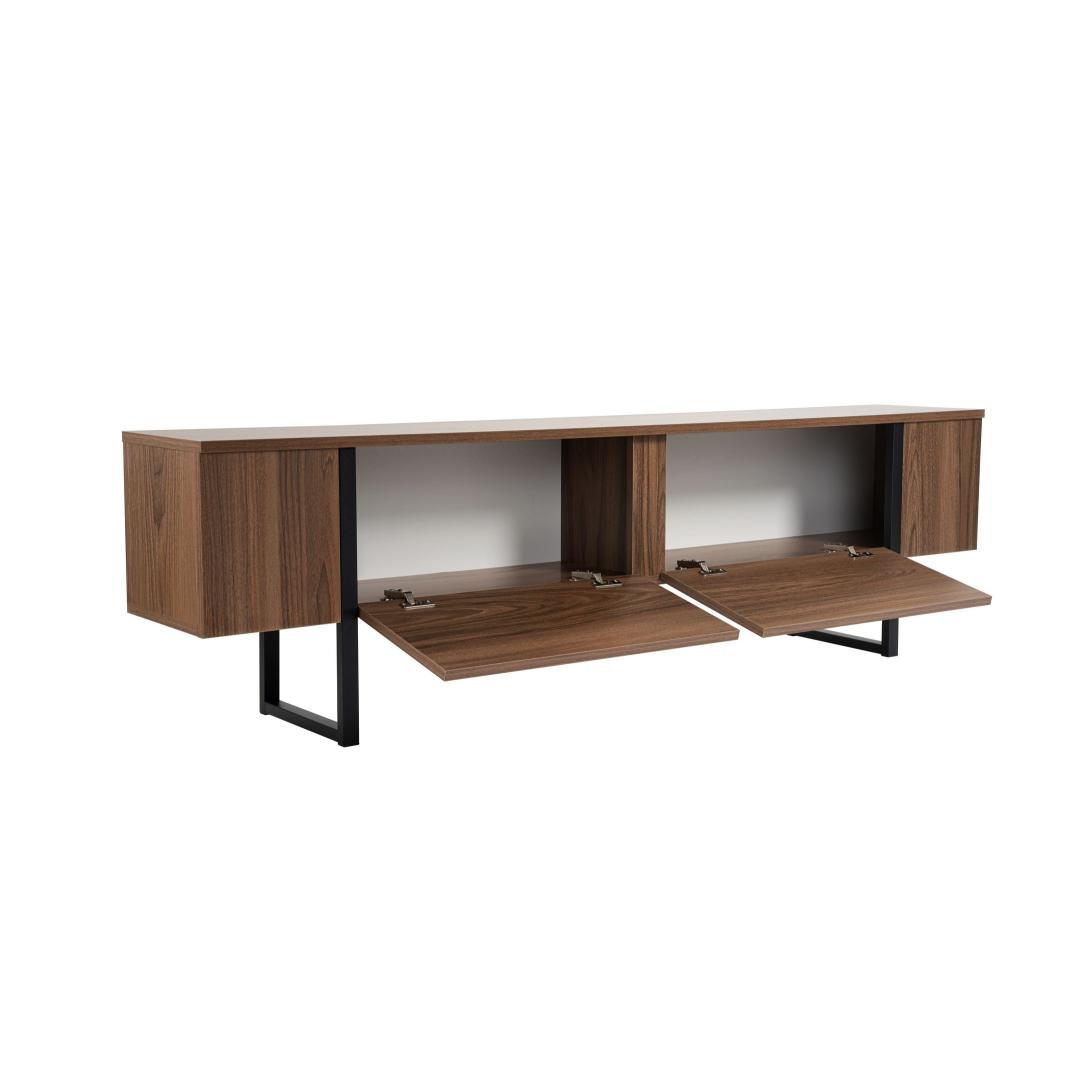 Muuda oma elutuba stiilseks ja rafineerituks ruumiks meie modernse telerialuse abil. See voolujooneline ja elegantne ese on loodud, et tõsta esitlemise ala välimust, pakkudes samal ajal piisavalt ruumi kõigi sinu meediaesemete jaoks.Tõsta oma ruumiSelle ainulaadse pähkli ja musta värvi kombinatsiooniga lisab see telerialus igasse ruumi luksuse puudutuse. Moodne disain ja tööstuslik stiil teevad sellest silmapaistva eseme, mis jätab mulje sinu külalistele ja muudab sinu elutoa nagu disaineri näituse.Funktsionaalne ja stiilneValmistatud 100% melamiinkattega puitlaastplaadist, on see telerialus mitte ainult ilus, vaid ka vastupidav ja pikaealine. 18mm paksus tagab stabiilsuse ja tugevuse, samas kui avarad mõõtmed 180cm x 50cm x 30cm pakuvad piisavalt ruumi sinu teleri, meedia mängijate ja dekoratsioonide jaoks.Organiseeri stiilseltÜtle hüvasti segadusele ja tere korraldusele, kasutades selle telerialuse pakutavaid avaraid hoiustamisvõimalusi. Avatud riiulid ja kapid pakuvad ruumi sinu meediaaksessuaaridele, raamatutele ja muule, hoides sinu elutoa korras ja puhtana.Tehnilised andmed:Materjal: 100% melamiinkattega puitlaastplaatPaksus: 18mmMõõtmed: 180cm (L) x 50cm (K) x 30cm (S)Värv: Pähkel ja MustKontseptsioon: Moodne - Uudsus, Tööstuslik Värv: Walnut Black