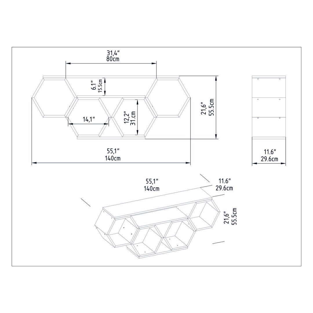 Width: 140 cm Depth: 29,6 cm Height: 55,5 cm