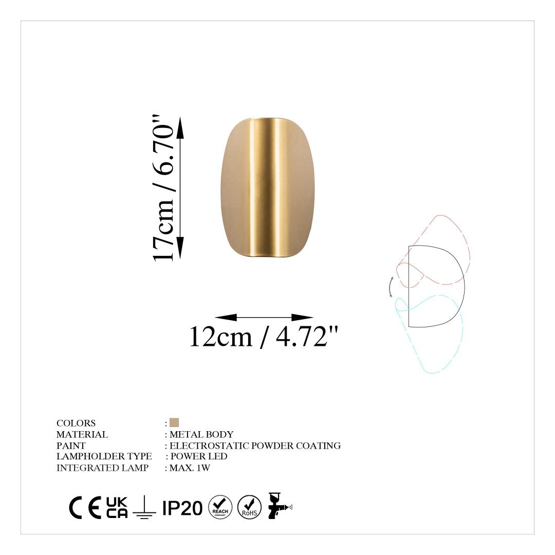 With its sleek and modern design, this Wall Lamp effortlessly complements any interior style, whether it's a contemporary living room or a cozy bedroom. Its gold color adds a touch of luxury and refinement, instantly elevating the ambiance of your space. Let the soft glow of the LED 1W 3000K light up your room, creating a cozy and intimate setting for relaxation or entertaining.