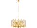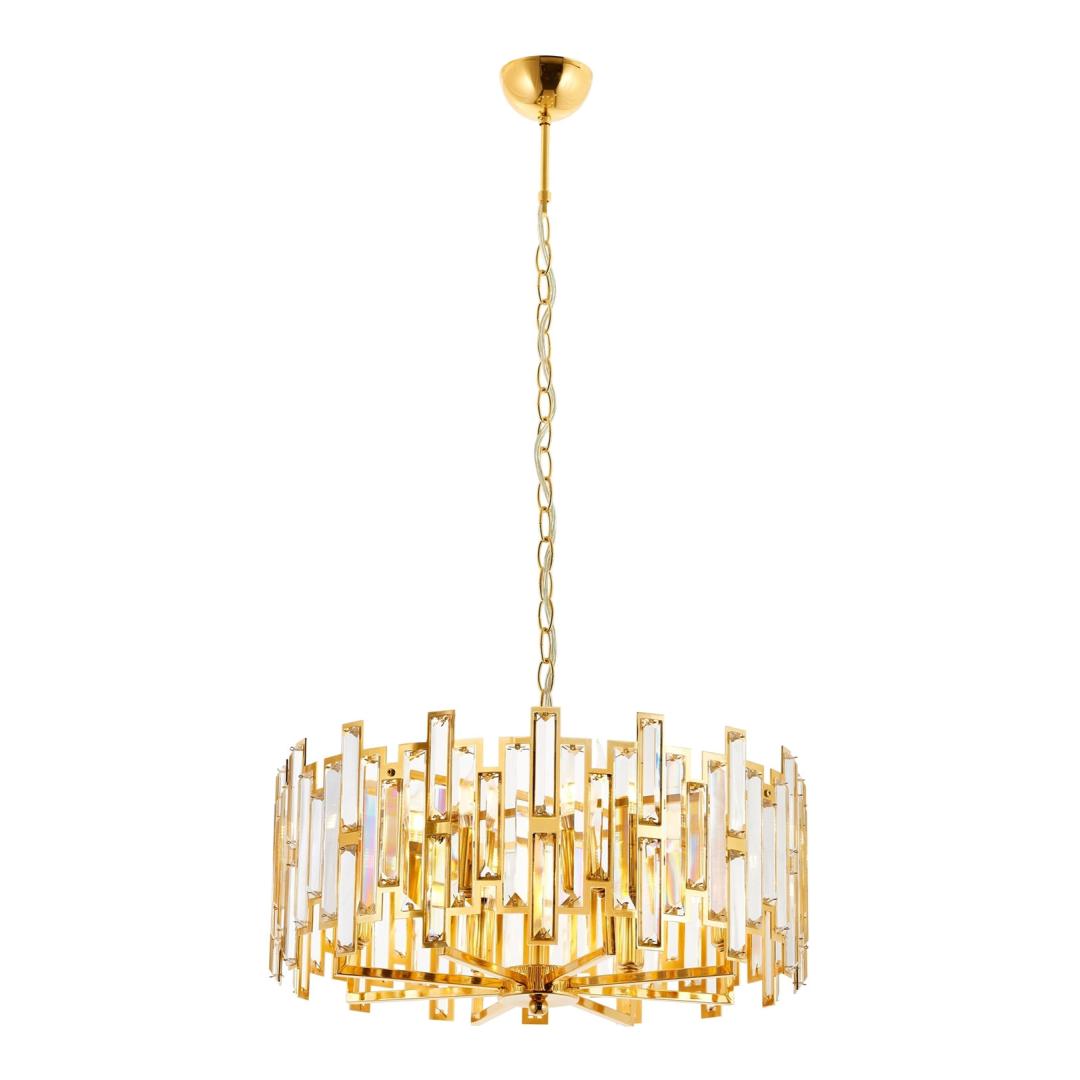 Crafted with a metal body, this chandelier exudes durability and sophistication. The crystal cap adds a touch of opulence, reflecting light in a mesmerizing display. Its solid gold color enhances the overall aesthetic, creating a statement piece that will leave your guests in awe.