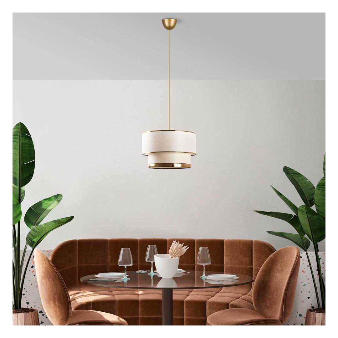 The metal body of this chandelier is beautifully crafted, with a cotton cap that adds a soft and luxurious touch. The cream and gold colors blend seamlessly, creating a harmonious and eye-catching design that will enhance the overall aesthetic of your home.