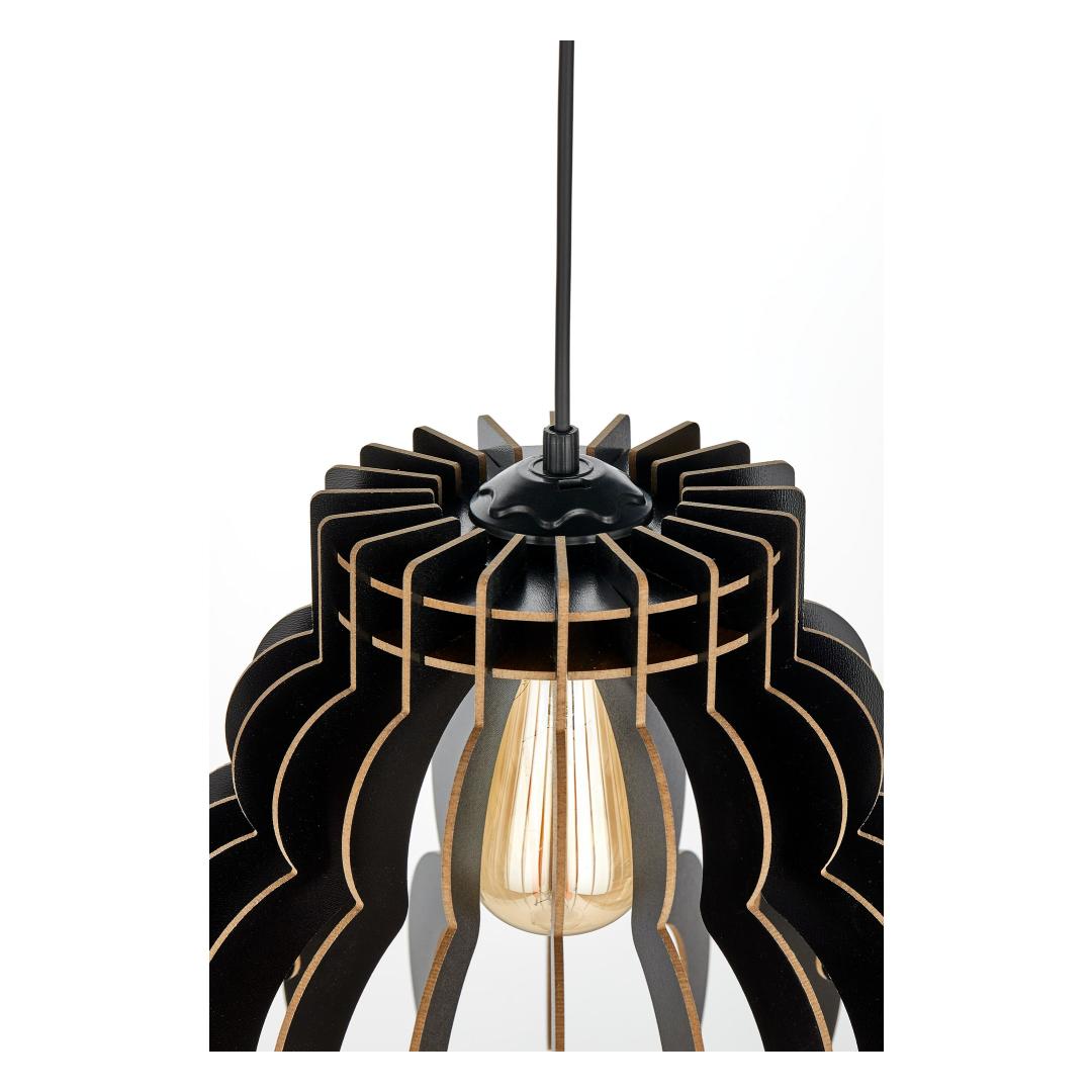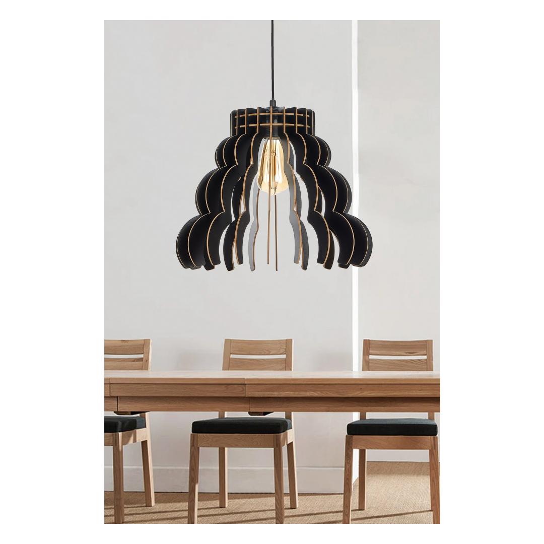 Stand out from the crowd with this eye-catching chandelier that is sure to be the focal point of any room. Its unique design and sleek black color will add a touch of modern elegance to your space.
