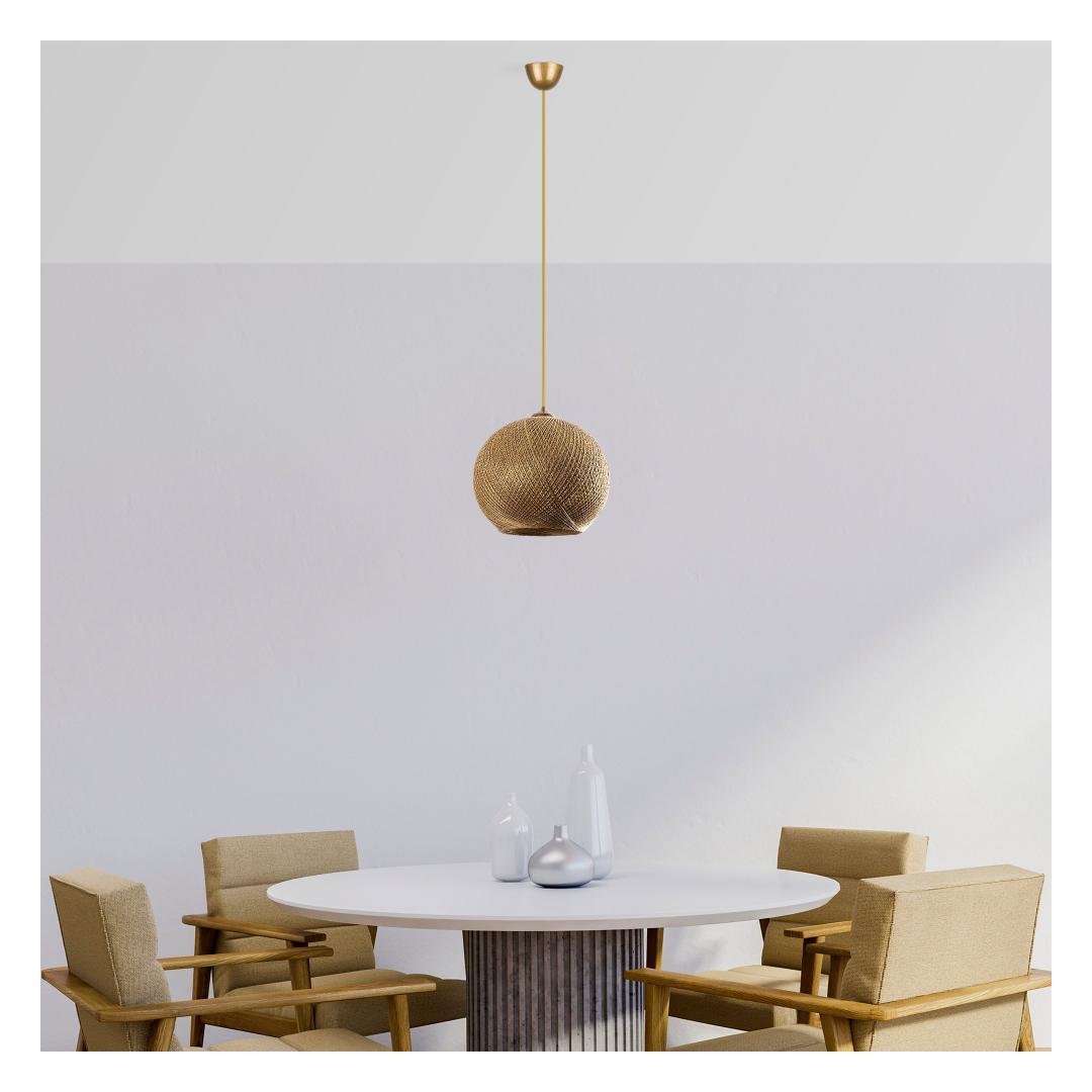 Make a statement with this unique and stylish chandelier that will instantly elevate your home decor. The handmade jute design adds a touch of rustic charm while the gold accents bring a touch of luxury to any room. Whether you hang it in your living room, dining room, or bedroom, this chandelier is sure to be the focal point of your space.