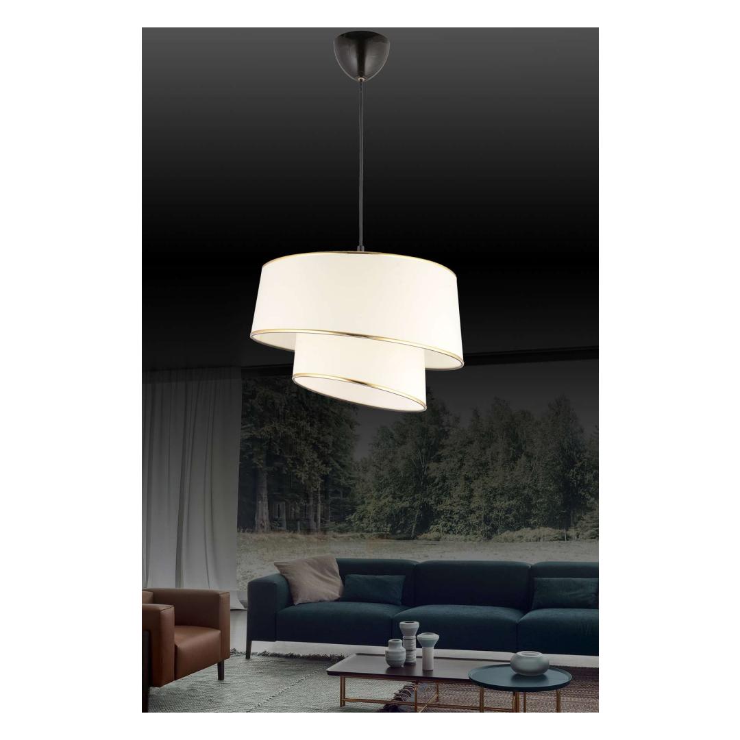 Muuda oma eluruumi meie kauni plastkeha lühtriga. See elegantne ese on varustatud kangast kattega ning stiilse valge ja kuldse värvikombinatsiooniga, mis lisab igasse ruumi luksuslikku puudutust. Lühtri ainulaadne disain tõstab koheselt teie kodu sisustust ja loob sooja ning kutsuva atmosfääri.Tõsta oma kodu sisustusLisa oma eluruumi elegantsi meie plastkeha lühtriga. Valge ja kuldse värvikombinatsiooni kombinatsioon loob luksusliku ja rafineeritud ilme, mis jätab mulje teie külalistele ja teeb avalduse igas ruumis.Loo soe ja kutsuv atmosfäärLühtri pehme kuma loob teie kodus sooja ja kutsuva atmosfääri. Olgu tegemist õhtusöögipidamise või hea raamatu lugemisega, see kaunis ese täiustab iga ruumi atmosfääri.Tehnilised andmed:Materjal: Plastkeha, kangast kateKatte suurus: Ø35 h:23 cmPõhiplaadi suurus: Ø9 h:7 cmPesatüüp: 1 x E 27 Max 40 WKogukõrgus: 33 - 60 cmPirn ei ole kaasasPingetase: 110-240 VIP kood: IP20Värv: Valge ja kuldne Värv: White Gold