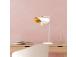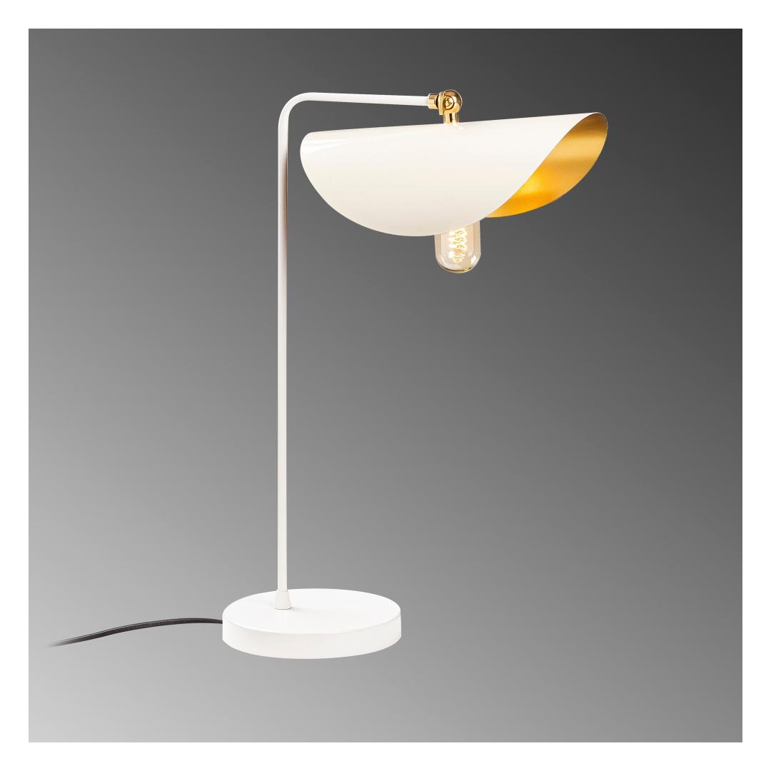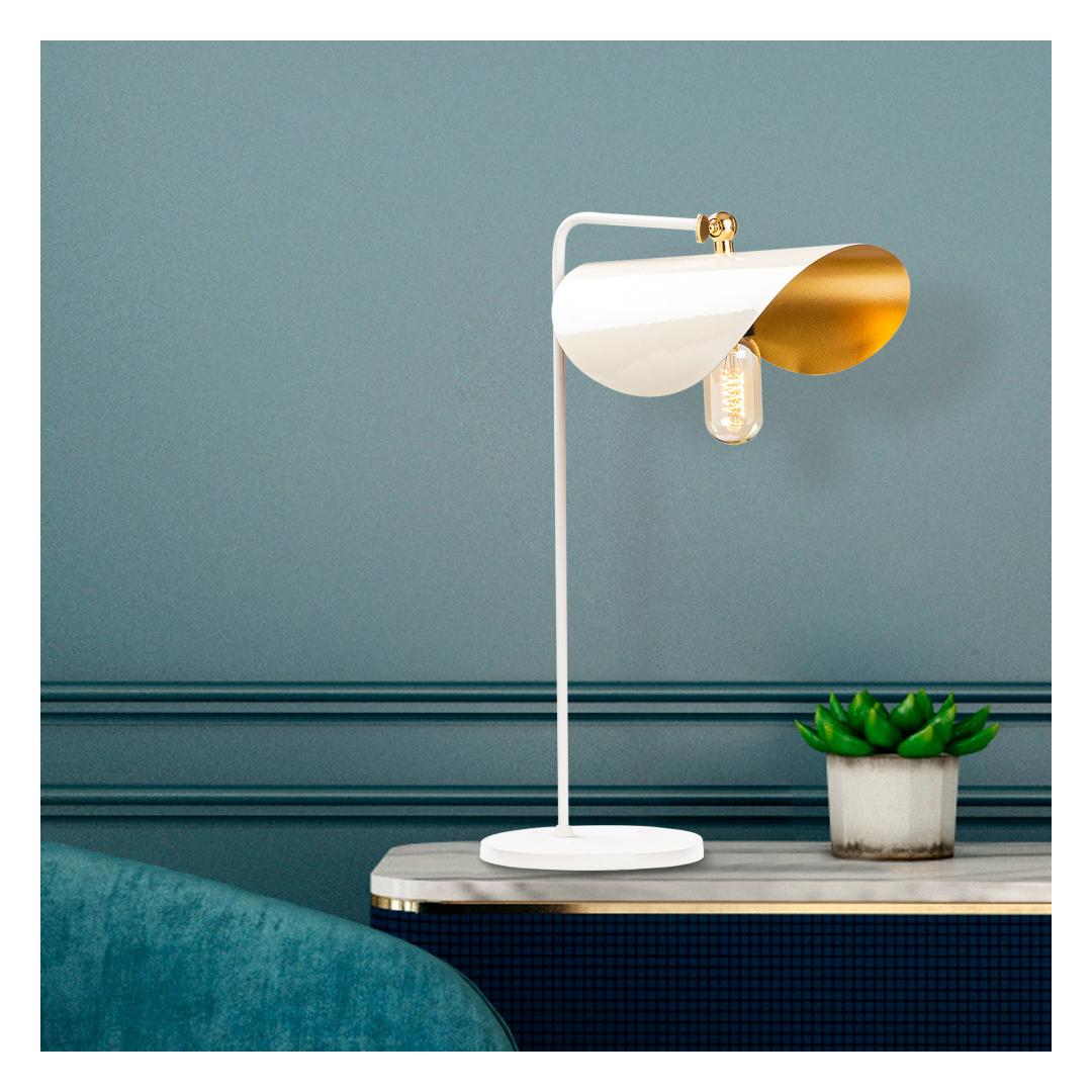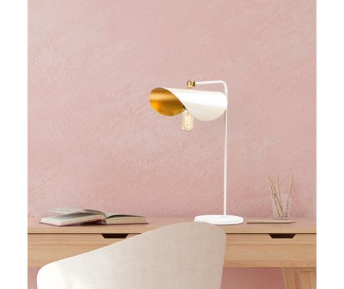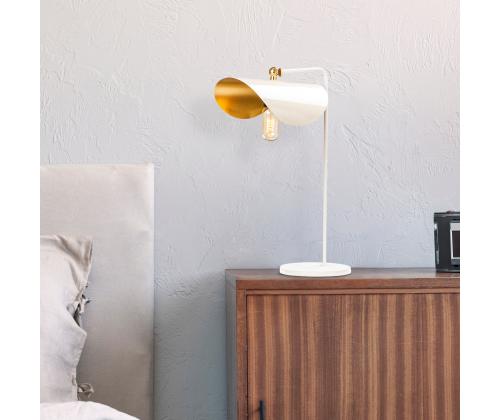 Crafted with a sleek metal body, this table lamp exudes a sense of luxury and refinement. Its unique shape and impeccable finish make it a true work of art. The combination of white and gold colors adds a touch of opulence, making it a statement piece that will instantly elevate any space.