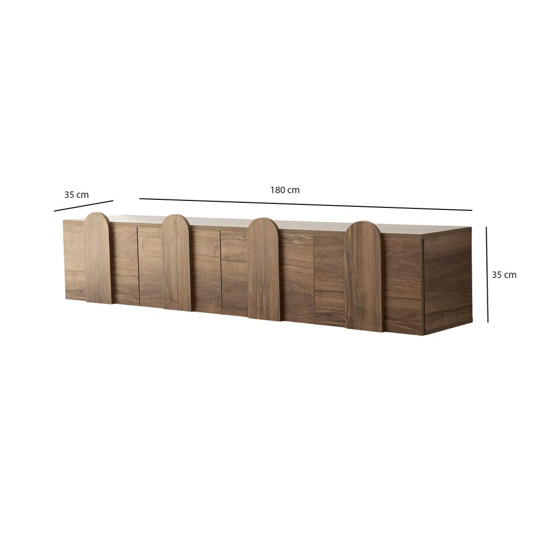 Parandage oma eluruumi stiilse ja funktsionaalse teleripuldigaMuuda oma elutuba moodsaks ja elegantseks ruumiks meie teleripuldiga. See elegantne ja stiilne mööblitükk on loodud selleks, et tõsta teie meelelahutuskogemust, lisades samal ajal teie koju elegantsi. Tõhustage oma vaatamiskogemustMeie teleripult pakub tänu oma ruumikale disainile piisavalt ruumi kõigi teie meediaseadmete, sealhulgas teleri, mängukonsoolide ja helisüsteemide jaoks. Lai 180 cm laius tagab, et saate mugavalt mahutada suuri ekraane, mis võimaldab teil nautida oma lemmikfilme ja -saateid uimastava selgusega.Tugev ja vastupidav konstruktsioon100% melamiiniga kaetud puitlaastplaadist valmistatud teleripult on valmistatud kestma. Raami 18 mm paksus tagab stabiilsuse ja vastupidavuse, pakkudes usaldusväärset tuge teie väärtuslikule elektroonikale. PVC-servaribad lisavad täiendava kaitsekihi, vältides juhuslikest põrutustest või löökidest tulenevaid kahjustusi. Elegantne pähklipuust viimistlusTeleri statiivil on ilus pähklipuu värvi, mis lisab igasse tuppa elegantsi. Rikkalikud toonid ja naturaalne puidumass loovad sooja ja kutsuva atmosfääri, muutes selle ideaalseks täienduseks teie kodu sisustusele. Lihtne kokkupanek ja lahtivõtmineMeie televiisoripult tuleb teie mugavuse huvides lahtivõetuna, mistõttu on seda lihtne transportida ja igas ruumis üles seada. Lihtne ja lihtne kokkupanek tagab, et saate oma uut mööblit kiiresti nautida. Tehnilised üksikasjad:Raam: 100% melamiiniga kaetud puitlaastplaatPaksus: 18 mmLaius: 180 cmKõrgus: 45 cmSügavus: 35 cmPVC servaribadLihtne transportimiseks ja kokkupanekuks lahtivõetavVärv: Pähkelpuu Värv: Walnut