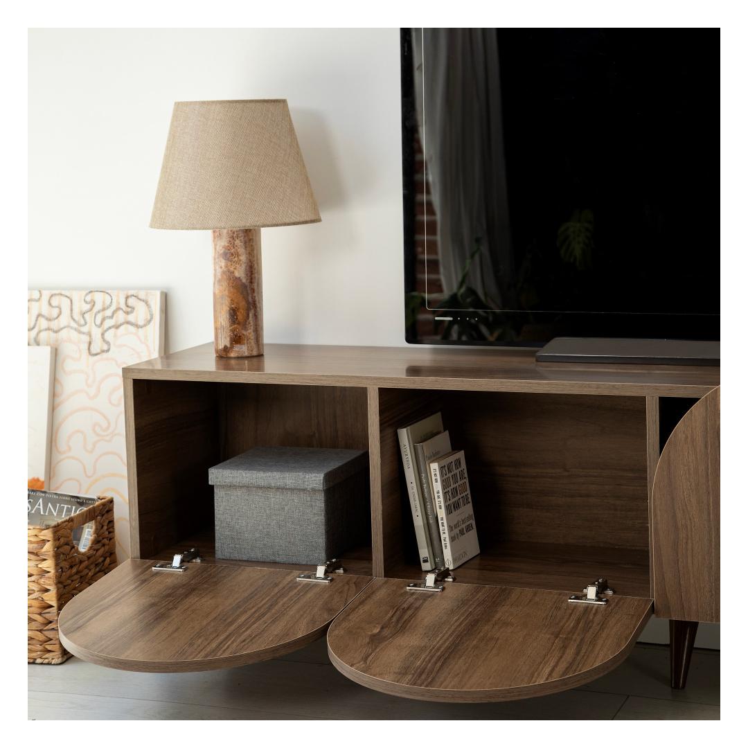 Muuda oma elutuba hubaseks ja stiilseks pelgupaigaks meie kauni pähklivärvi telerialuse abil. See telerialus ei ole lihtsalt mööbliese, vaid elegantsi ja rafineerituse väljendus.Elegantne disain kaasaegsetele eluruumideleSelle telerialuse voolujooneline ja kaasaegne disain tõstab koheselt teie elutoa välimust. Pähklivärv lisab igasse ruumi soojust ja rikkust, samas kui PVC servabandid annavad viimistletud ilme.Avar ja funktsionaalne180 cm laiuse, 50 cm kõrguse ja 35 cm sügavusega telerialus pakub piisavalt ruumi teie televiisori, meedia mängijate ja muude meelelahutuse tarvikute jaoks. Lahtivõetav disain muudab selle transportimise ja igas toas kokkupanemise lihtsaks.Kestvad ja kvaliteetsed materjalidValmistatud 100% melamiinkattega puitlaastplaadist, mille paksus on 18 mm, on see telerialus loodud kestma. Tugev konstruktsioon tagab stabiilsuse ja vastupidavuse aastateks.Tehnilised andmed:Raam: 100% MELAMIINKATTED PUITLAASTPLAATPaksus: 18 mmLaius: 180 cmKõrgus: 50 cmSügavus: 35 cmPVC servabandidLahtivõetavVärv: Pähkel Värv: Walnut