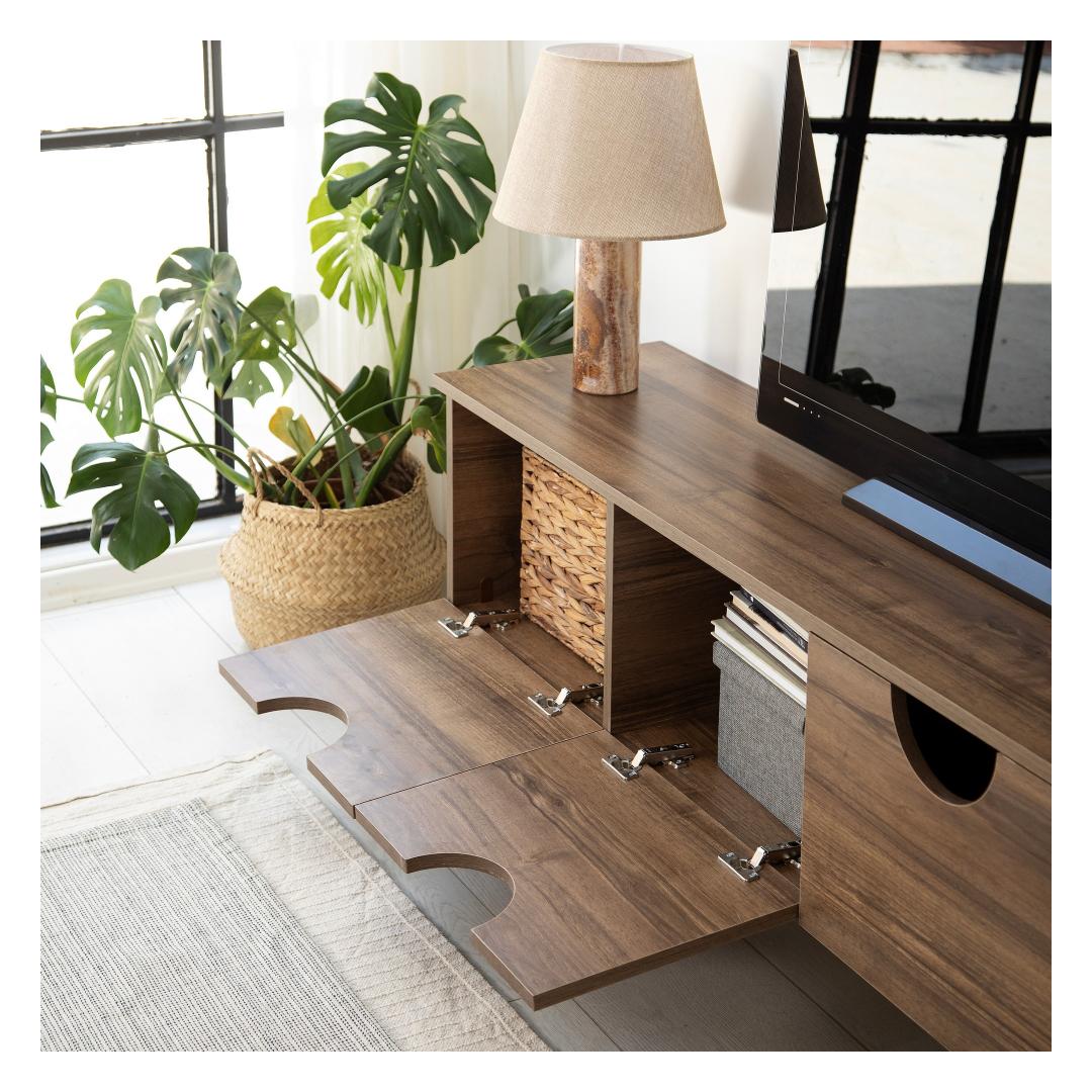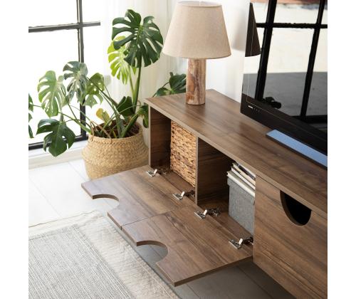 Parandage oma eluruumi stiilse ja funktsionaalse teleripuldigaMuuda oma elutuba moodsaks ja elegantseks ruumiks meie teleripuldiga. See elegantne ja stiilne mööblitükk on loodud selleks, et tõsta teie meelelahutuskogemust, lisades samal ajal teie koju elegantsi. Tõhustage oma vaatamiskogemustMeie teleripult pakub tänu oma ruumikale disainile piisavalt ruumi kõigi teie meediaseadmete, sealhulgas teleri, mängukonsoolide ja helisüsteemide jaoks. Lai 180 cm laius tagab, et saate mugavalt mahutada suuri ekraane, mis võimaldab teil nautida oma lemmikfilme ja -saateid uimastava selgusega.Tugev ja vastupidav konstruktsioon100% melamiiniga kaetud puitlaastplaadist valmistatud teleripult on valmistatud kestma. Raami 18 mm paksus tagab stabiilsuse ja vastupidavuse, pakkudes usaldusväärset tuge teie väärtuslikule elektroonikale. PVC-servaribad lisavad täiendava kaitsekihi, vältides juhuslikest põrutustest või löökidest tulenevaid kahjustusi. Elegantne pähklipuust viimistlusTeleri statiivil on ilus pähklipuu värvi, mis lisab igasse tuppa elegantsi. Rikkalikud toonid ja naturaalne puidumass loovad sooja ja kutsuva atmosfääri, muutes selle ideaalseks täienduseks teie kodu sisustusele. Lihtne kokkupanek ja lahtivõtmineMeie televiisoripult tuleb teie mugavuse huvides lahtivõetuna, mistõttu on seda lihtne transportida ja igas ruumis üles seada. Lihtne ja lihtne kokkupanek tagab, et saate oma uut mööblit kiiresti nautida. Tehnilised üksikasjad:Raam: 100% melamiiniga kaetud puitlaastplaatPaksus: 18 mmLaius: 180 cmKõrgus: 45 cmSügavus: 35 cmPVC servaribadLihtne transportimiseks ja kokkupanekuks lahtivõetavVärv: Pähkelpuu Värv: Walnut