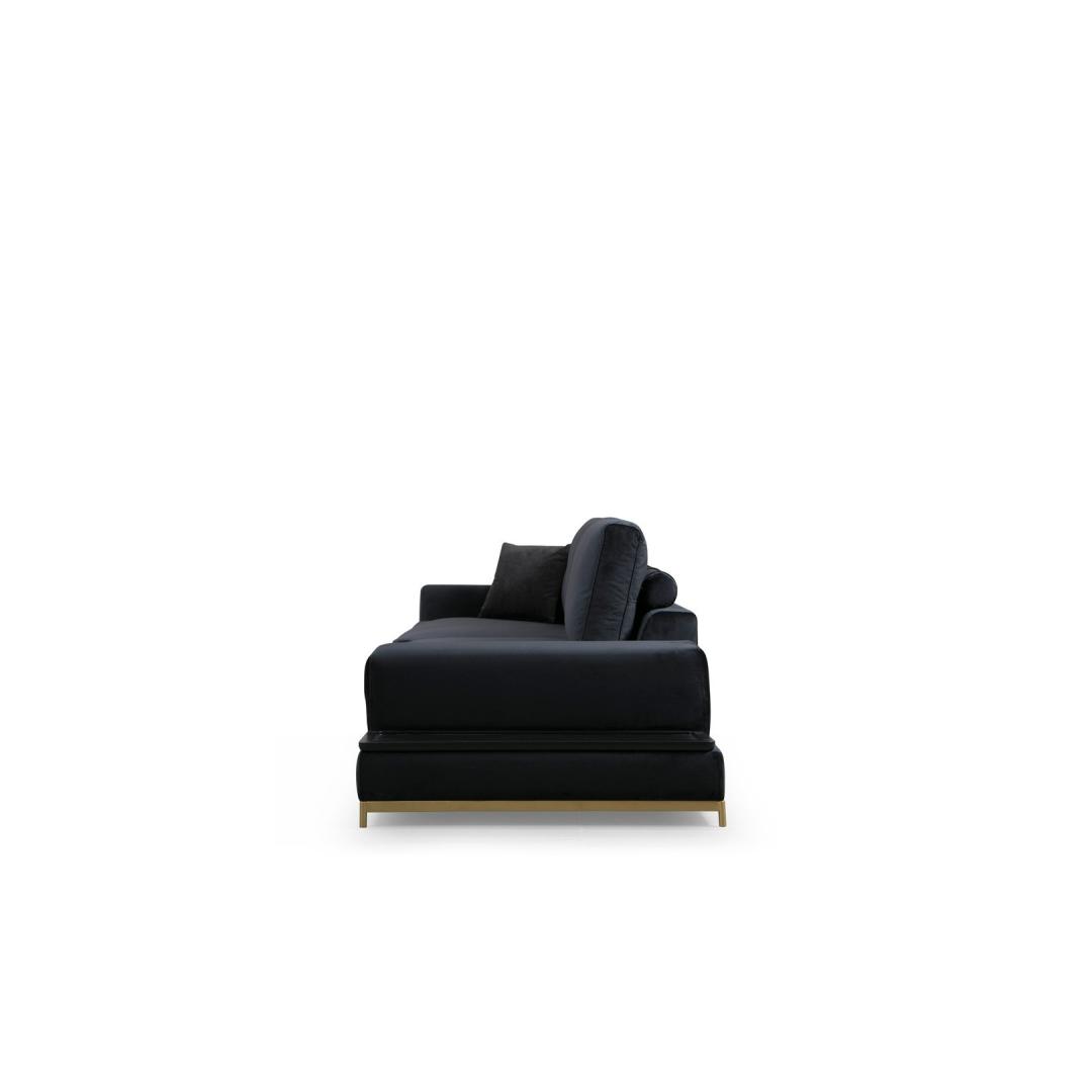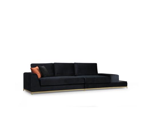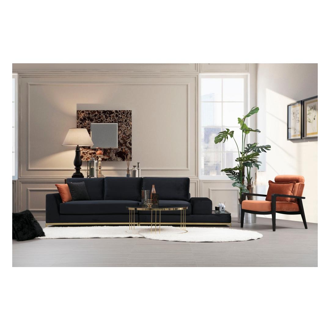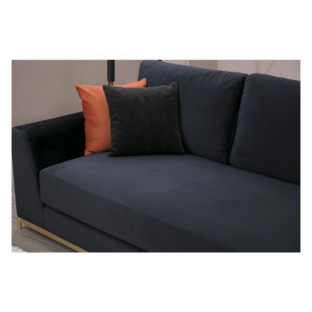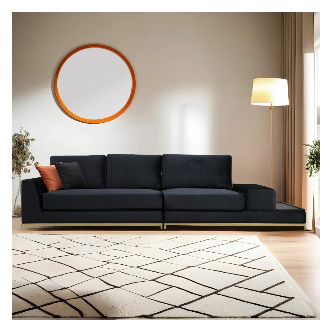 Indulge in luxury and sophistication with our stunning 4-Seat Sofa, designed to elevate your living space to new heights of elegance. The combination of sleek black fabric and glamorous gold accents creates a timeless and opulent look that will leave your guests in awe.