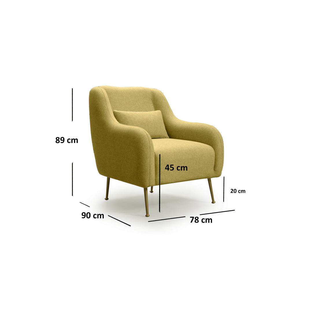 - Legs: Matt yellow metal legs