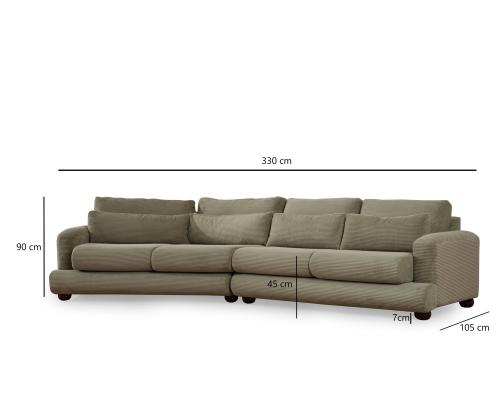 Length: 330 cm Width: 105 cm Height: 90 cm
