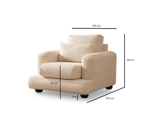 Crafted with a sturdy frame made of beech wood and chipboard, our 1-Seat Sofa is built to last. The round walnut wooden legs add a touch of elegance and sophistication to any room. The beige color of the sofa effortlessly blends with any decor, making it a versatile addition to your home.