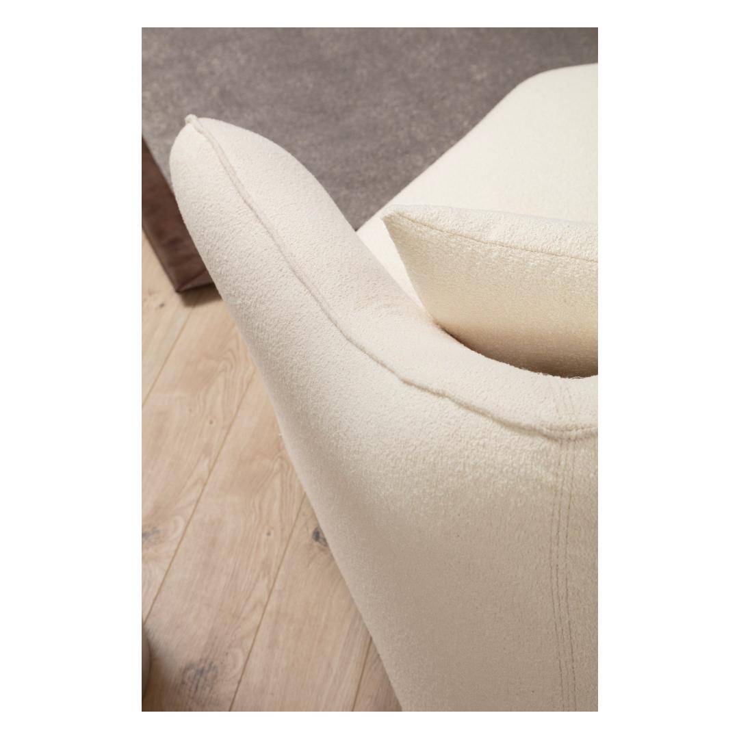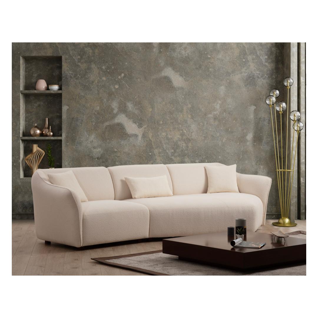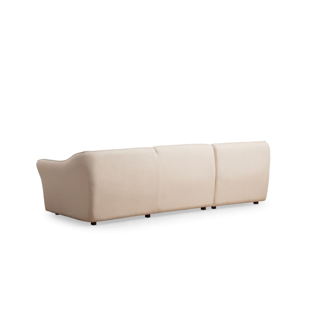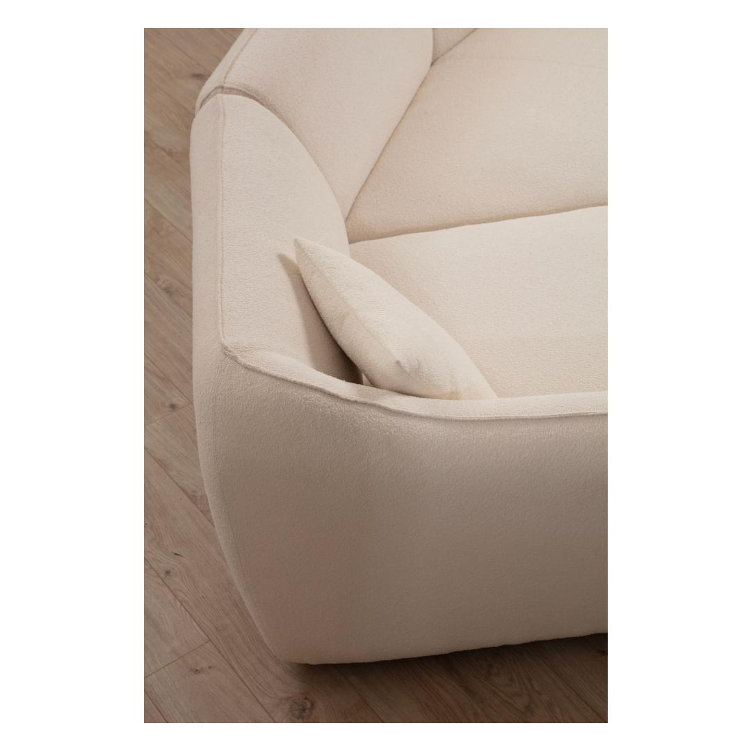 Crafted with a sturdy frame made of beech wood and chipboard, our Corner Sofa exudes durability and sophistication. The square walnut wooden legs add a touch of elegance, making it a statement piece in any room. The cream color(s) of the fabric further enhance its timeless appeal, effortlessly blending with any decor style.