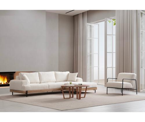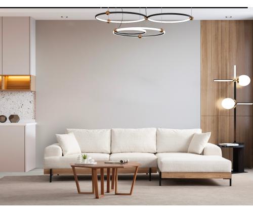 The sleek and modern design of our Corner Sofa will effortlessly complement any decor style. Its clean lines and neutral white color make it a versatile piece that can be easily incorporated into any space. The metal black legs add a touch of sophistication and stability.
