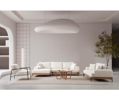 Not only does our Corner Sofa provide unrivaled comfort, but it also adds a touch of sophistication to any living space. The sleek design, complemented by the metal black legs, exudes elegance and modernity. The white color(s) of the sofa effortlessly blend with any interior decor, making it a versatile choice for your home.